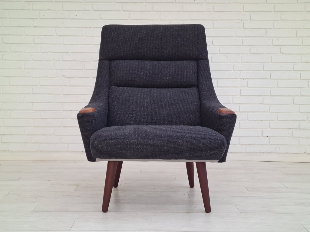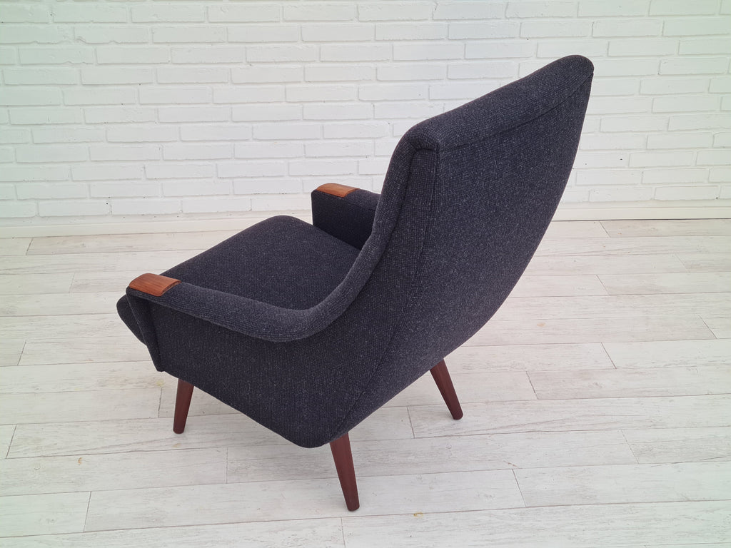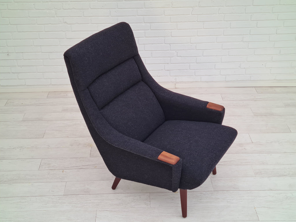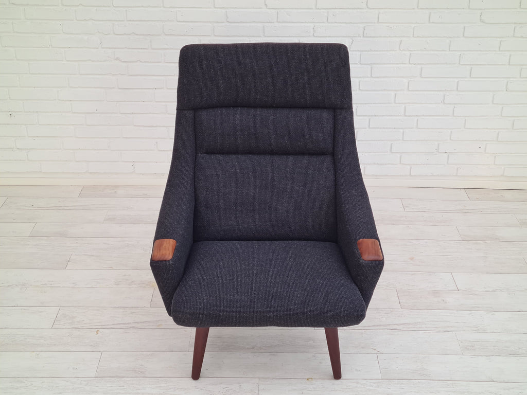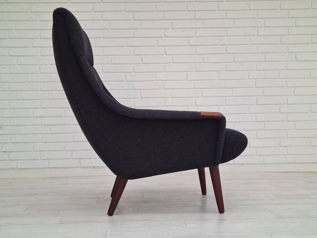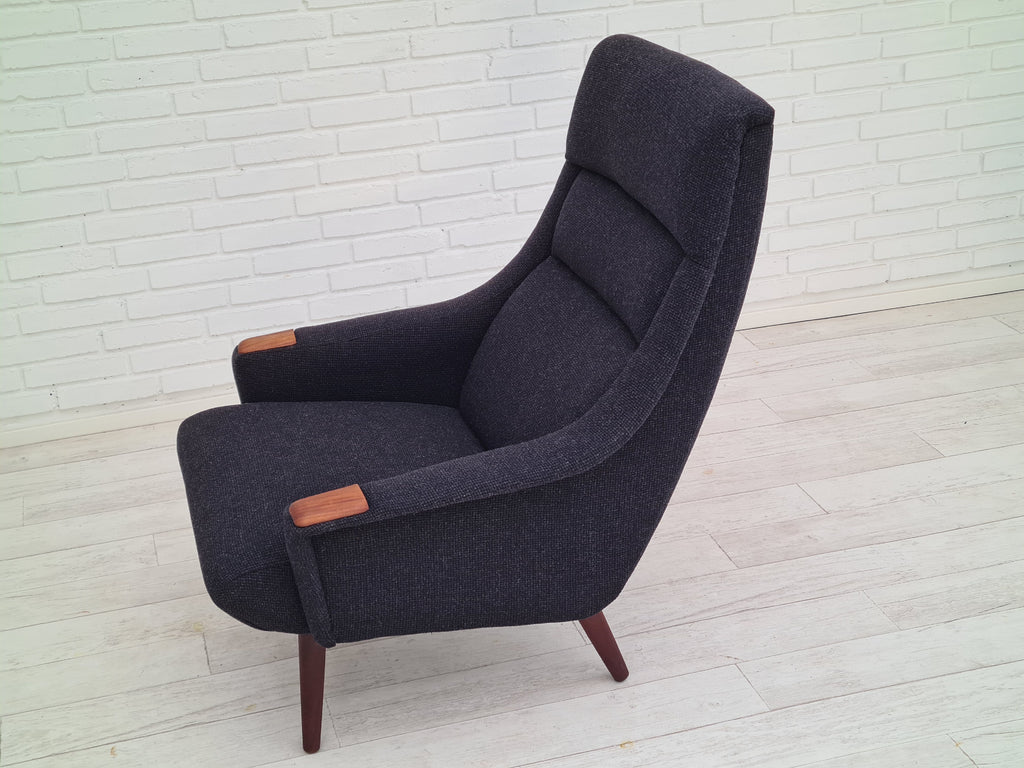Danish high-backed armchair, 1970s, furniture wool, teak