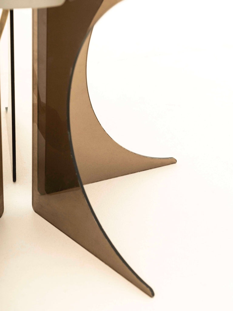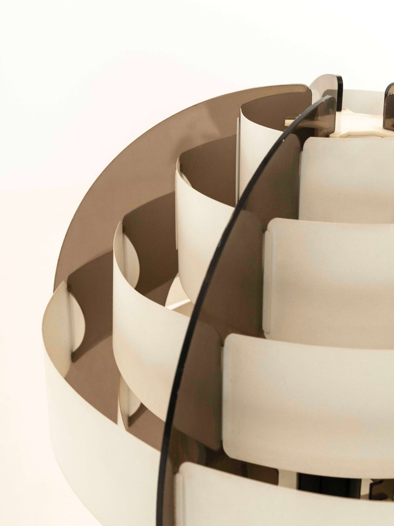 훈제 갈색 플렉시 유리와 흰색 아크릴 스트립이 아름다운 빛과 매우 특별한 분위기를 제공합니다.