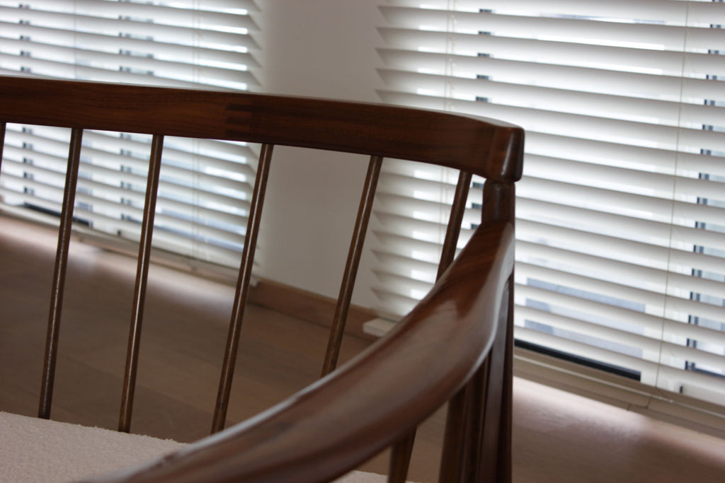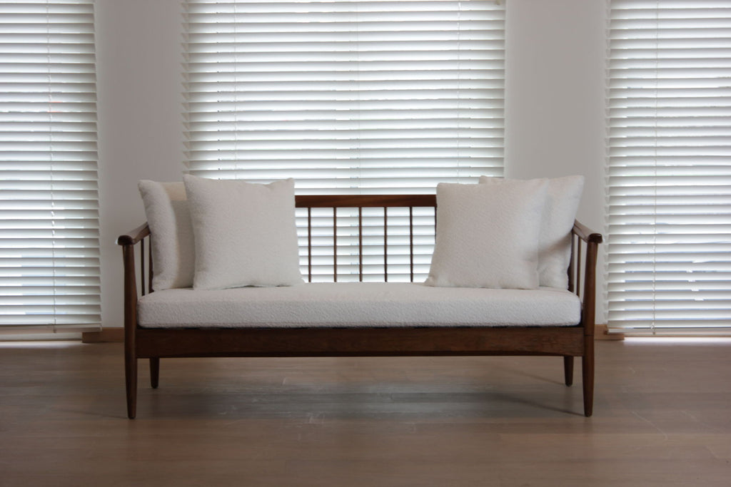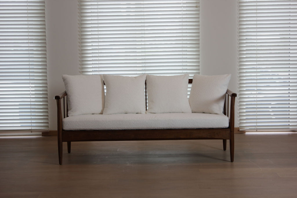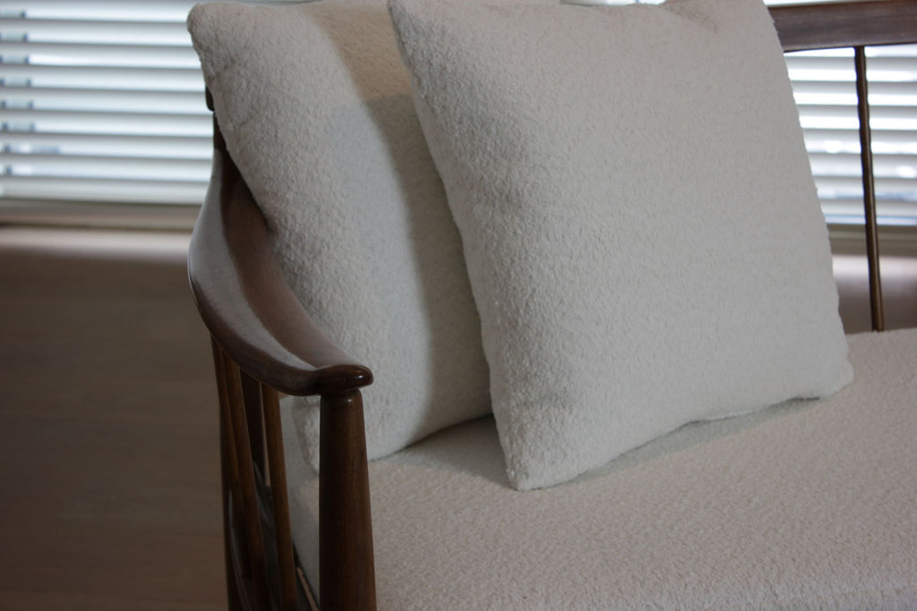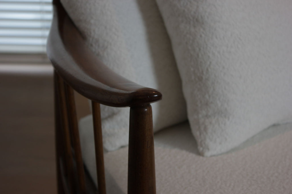 Teak and ivory boucle