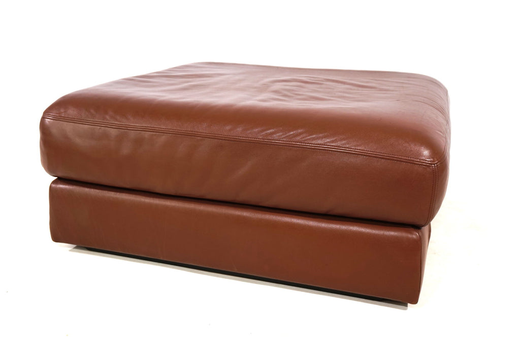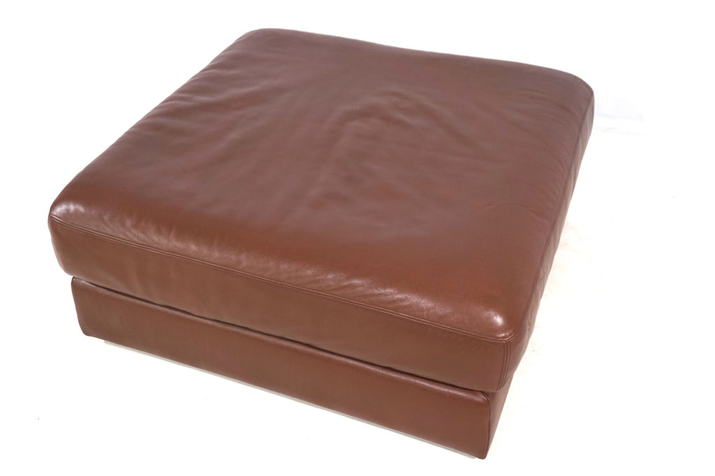 This De Sede ottoman from the DS 76 model series, which can easily be transformed into a comfortable bed, is in good condition. The brown leather of the ottoman is soft and undamaged, only a pressure mark is visible on one side of the base element. Due to its size, the ottoman is often used as a coffee table in conjunction with a De Sede sofa.