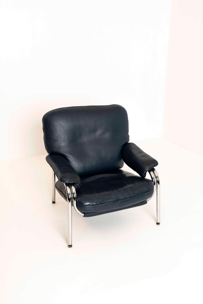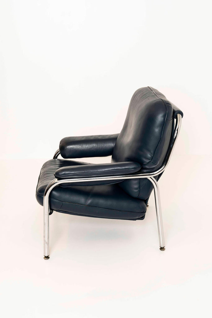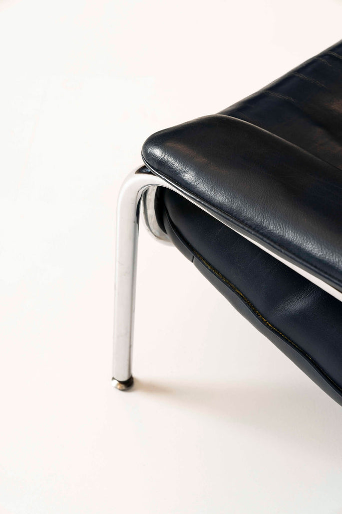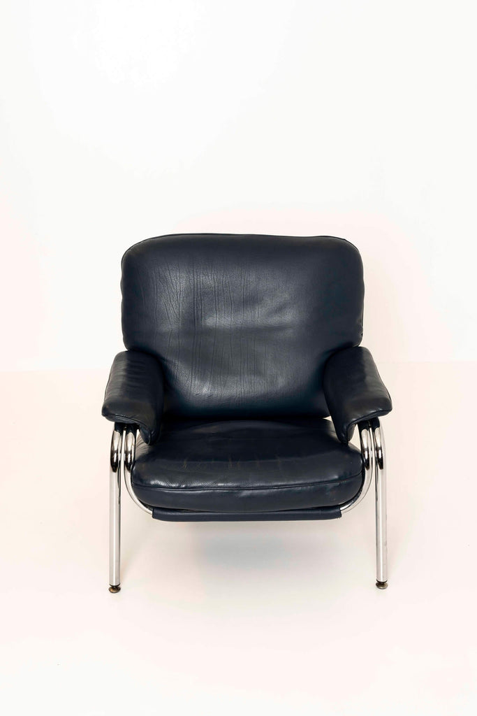 Hans Eichenberger의 파란색 가죽 DeSede 'Kanaroo' 라운지 체어, 1960년대.