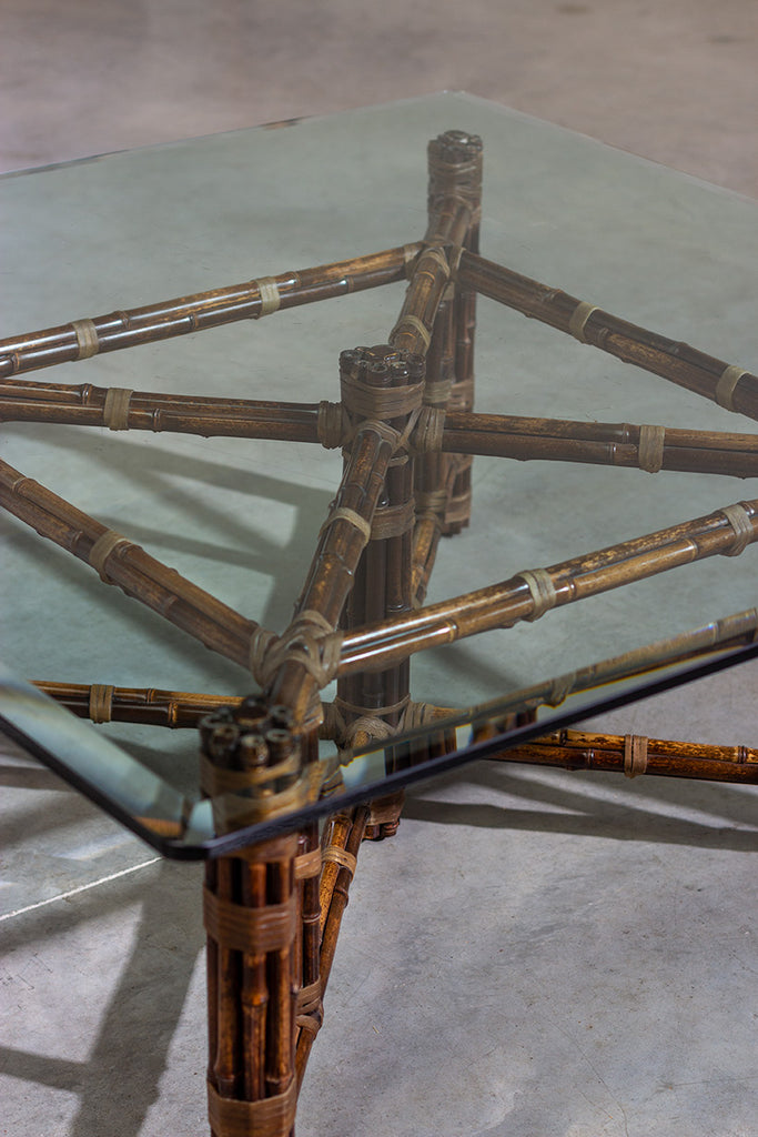 자연의 아름다움을 지닌 동양의 단단한 정글 덩굴, 베이스는 함께 묶인 다섯 개의 대나무 기둥을 특징으로 합니다.