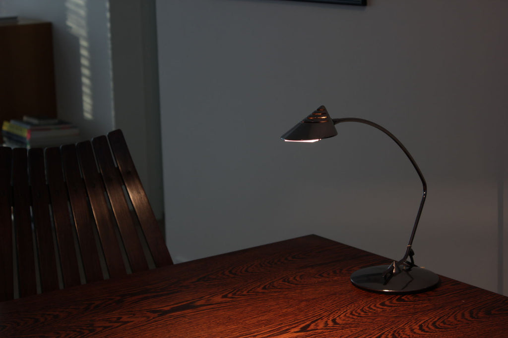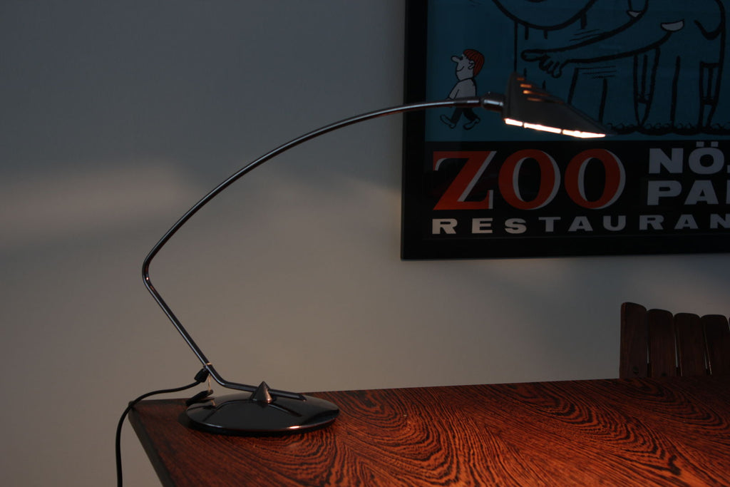 Fase Madrid 1980년대 스페인을 위한 Luis Perez de la Oliva의 책상 램프 크롬 높이 38cm, 폭 54cm
