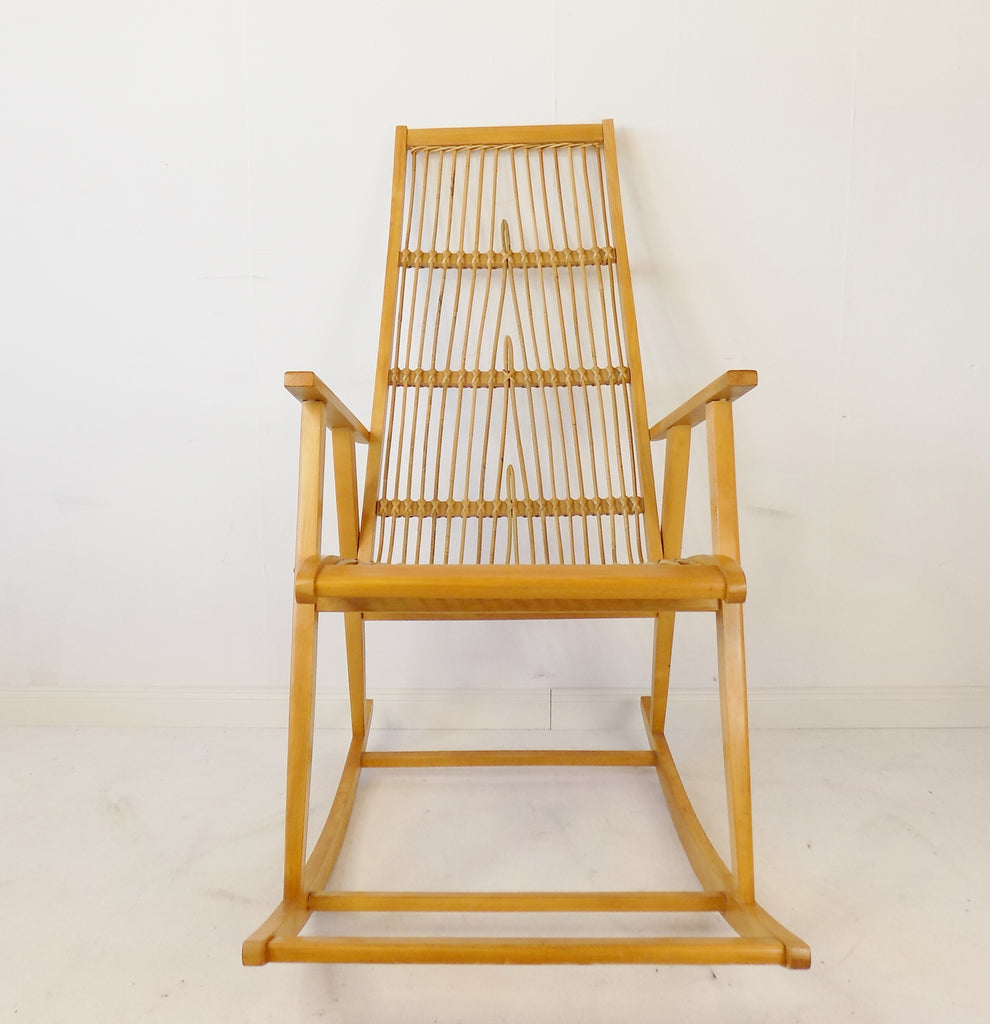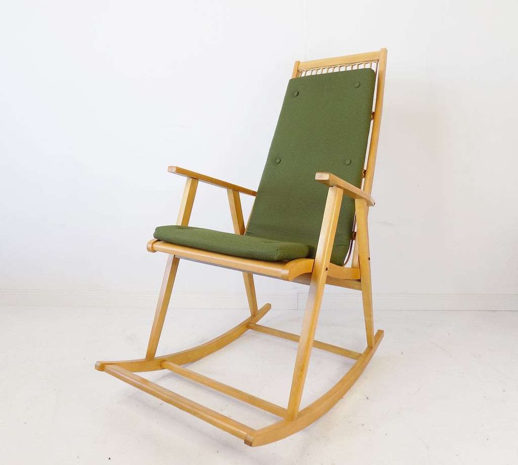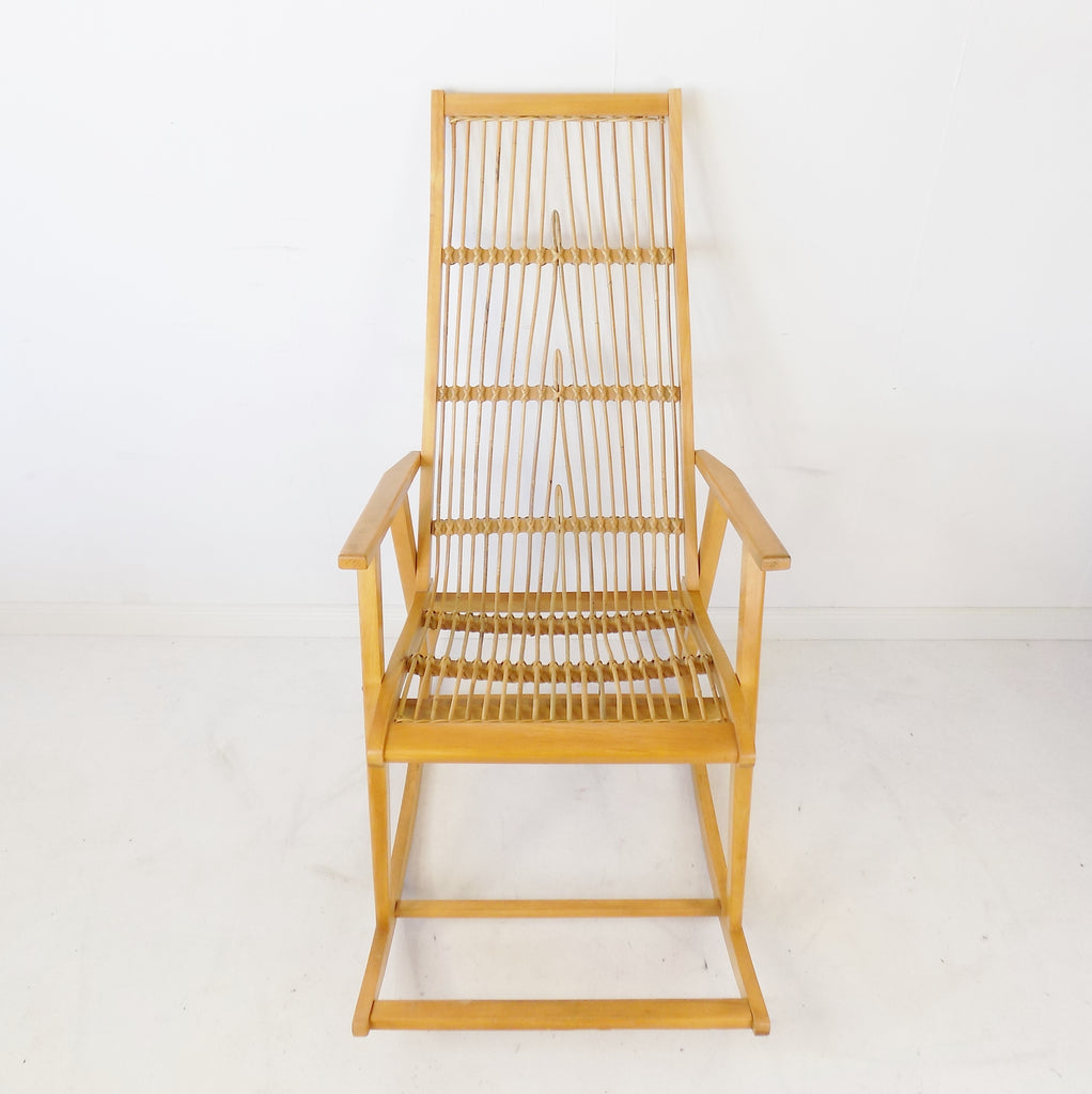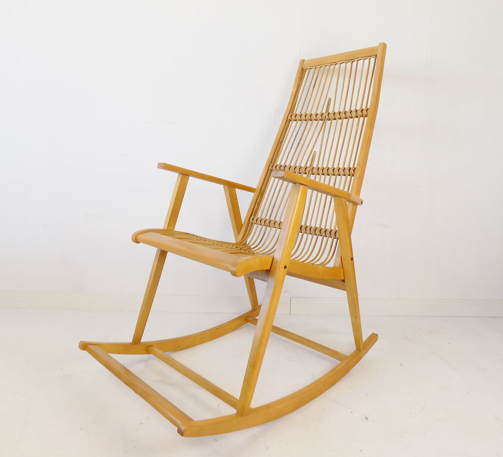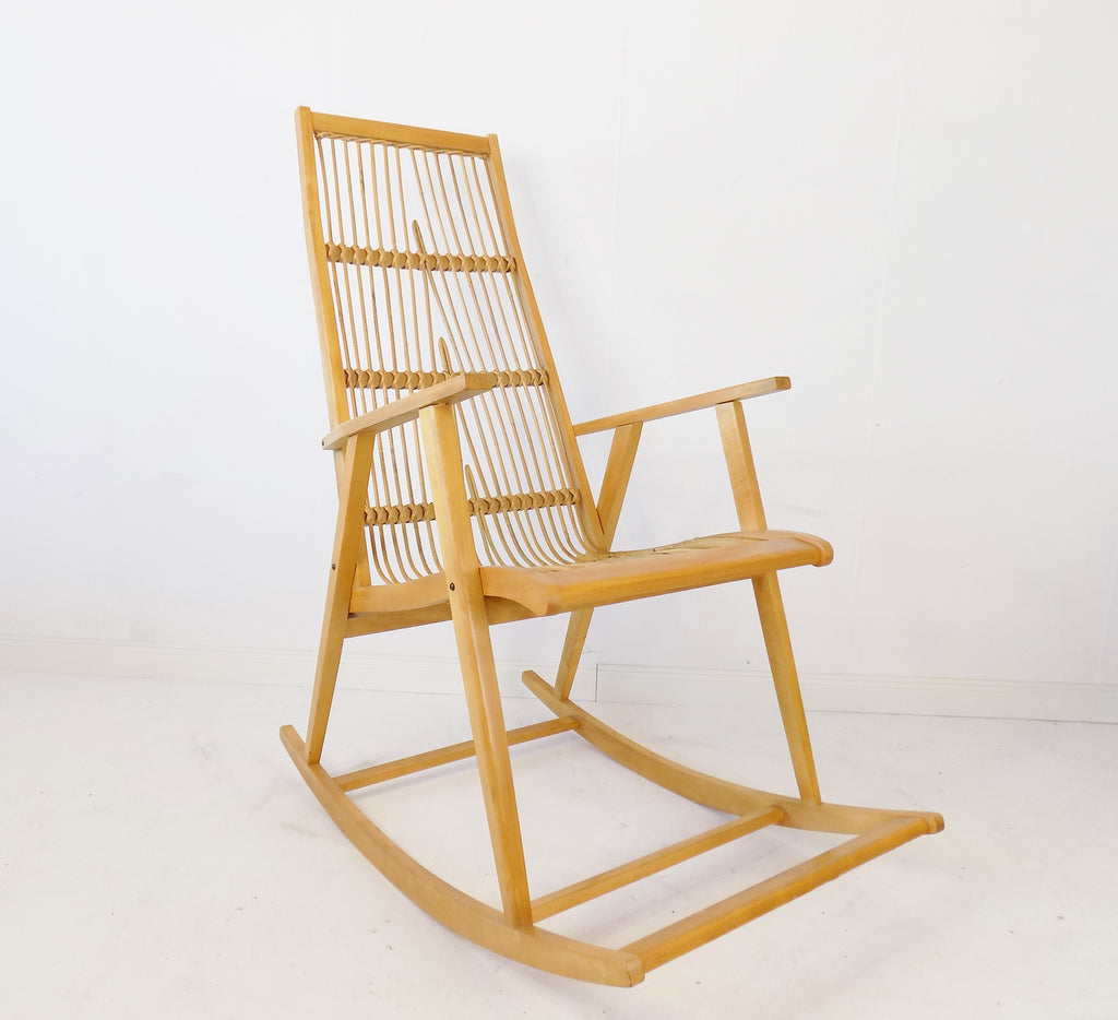 흔들의자는 1960년대 Deutsche Werkstätten Hellerau에서 제조되었습니다. Selman Selmanagic 및 Franz Ehrlich와 같은 많은 바우하우스 학생들은 Deutsche Werkstätten에서 일했으며 오늘날 많은 고전을 디자인했습니다.