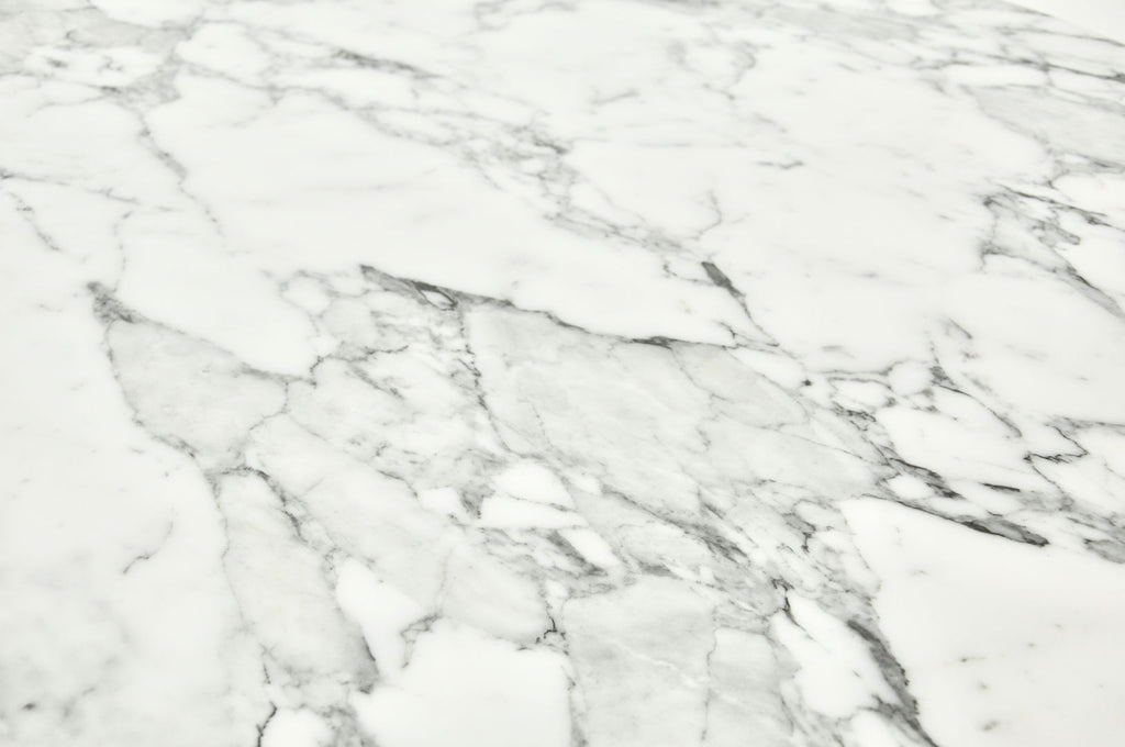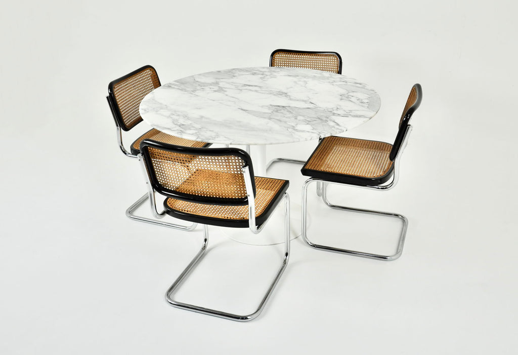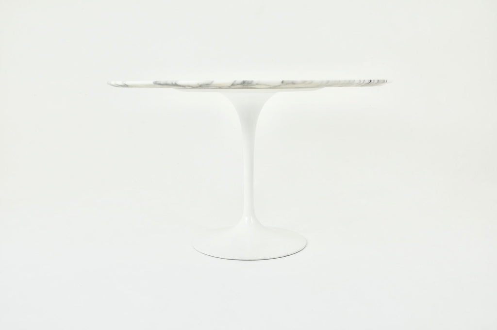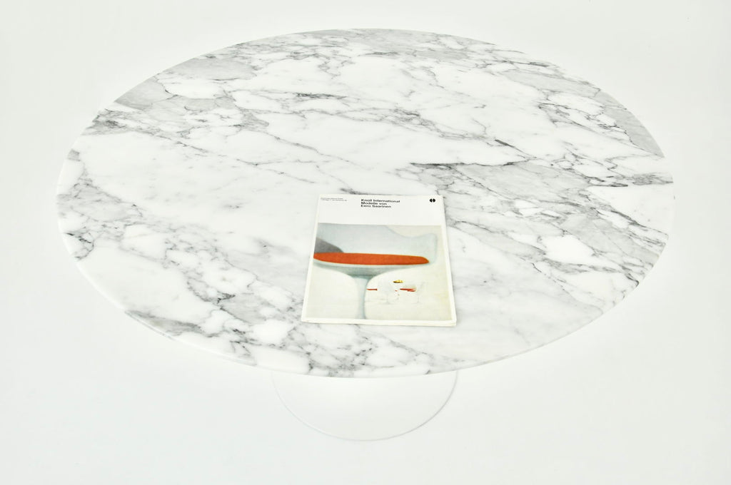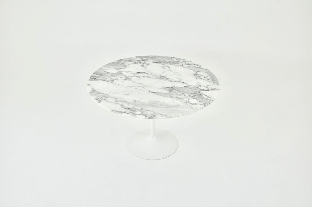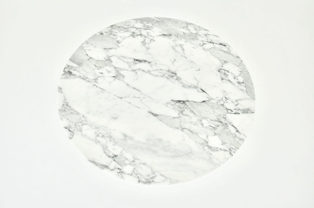Round table with marble top and aluminium base designed by Eero Saarinen and produced by Knoll International. Wear due to time and age of the table.