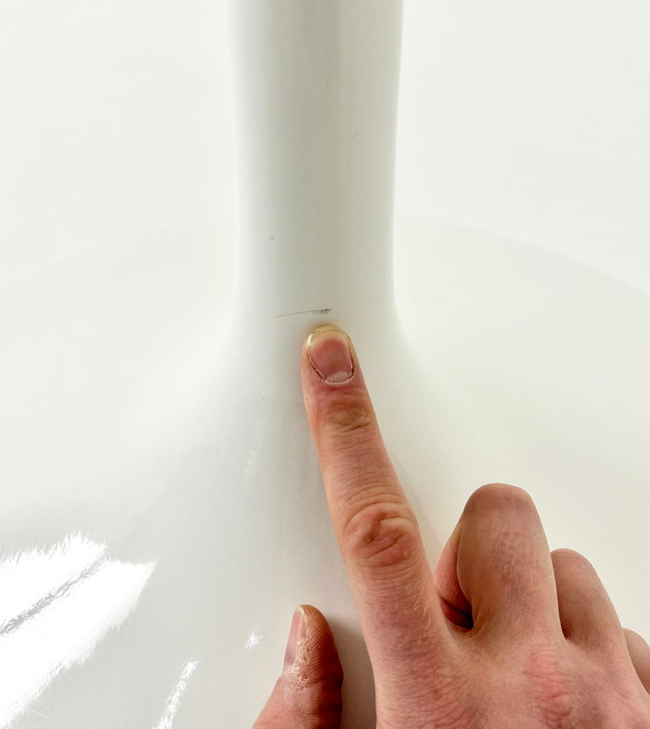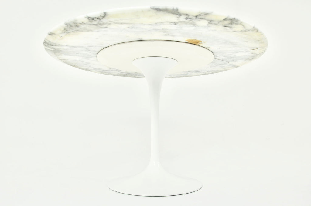 Eero Saarinen이 디자인하고 Knoll International이 제작한 대리석 상판과 알루미늄 베이스의 원형 테이블입니다. 테이블의 시간과 연식으로 인한 마모.
