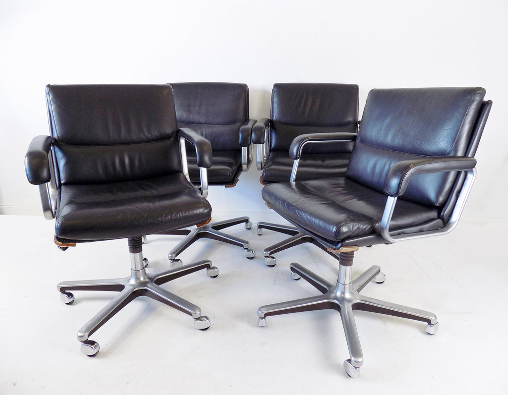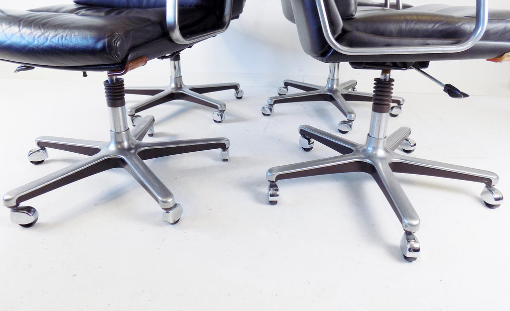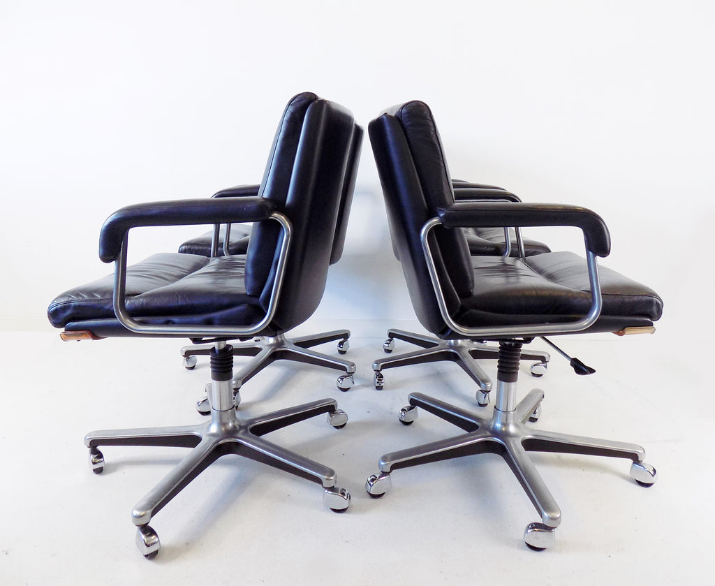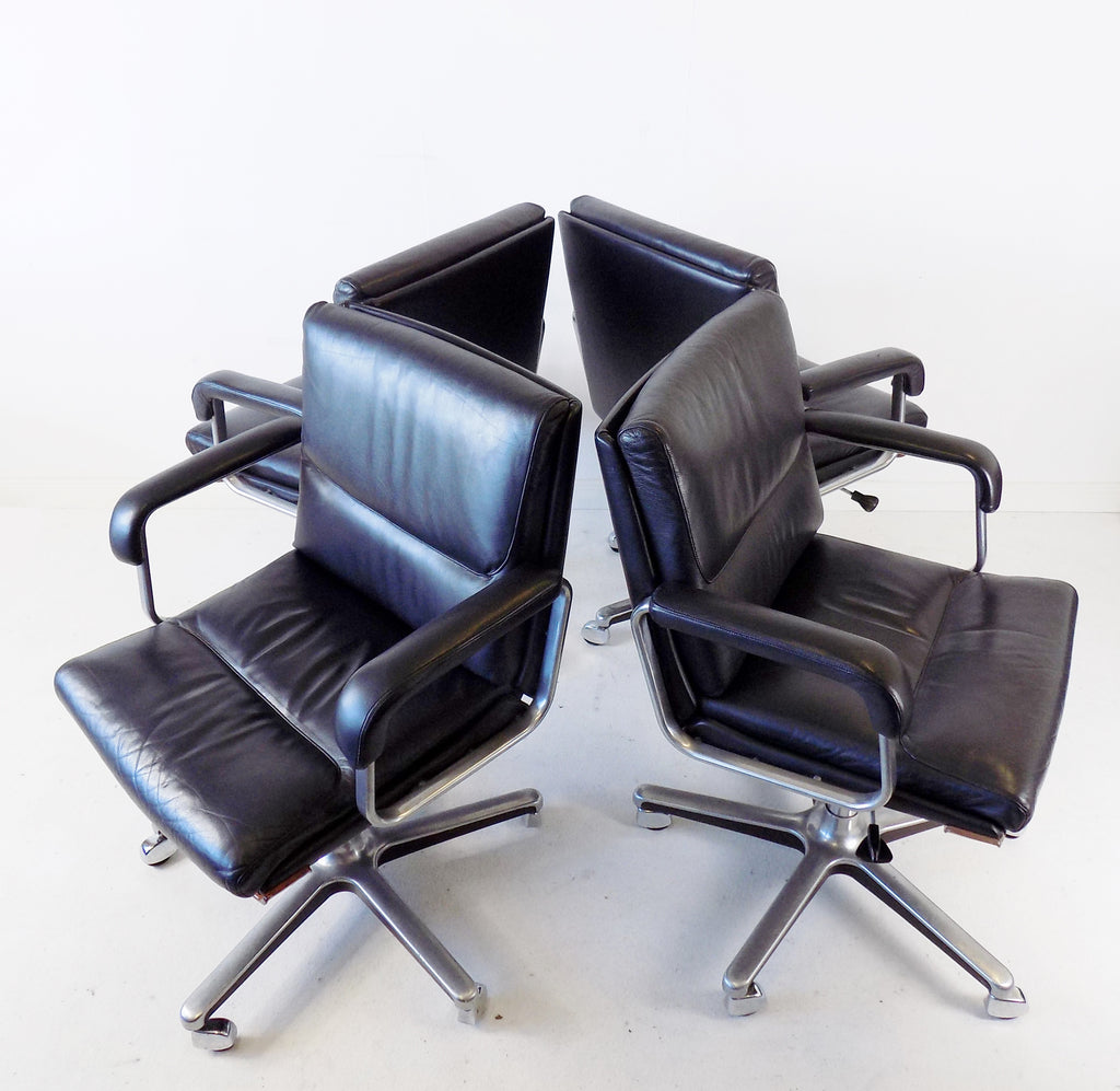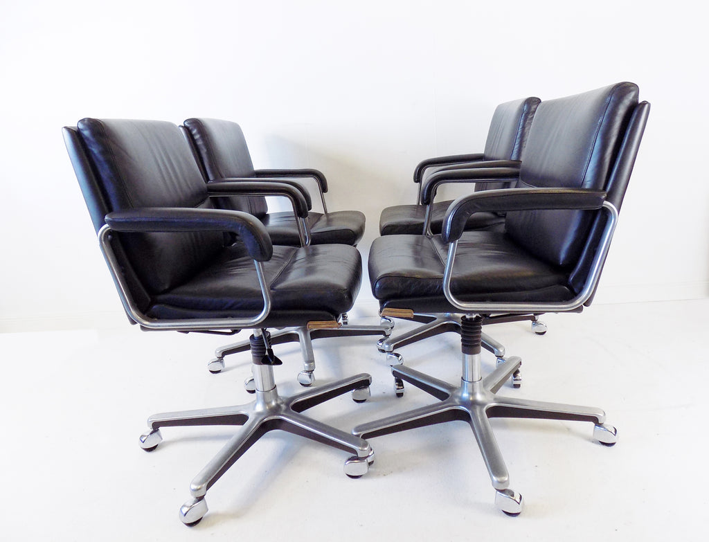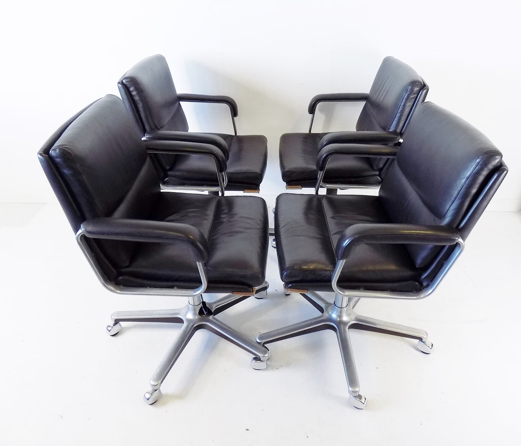 4개의 검은색 가죽 사무용 의자로 구성된 이 Drabert 세트는 최상의 상태를 유지하고 있습니다.