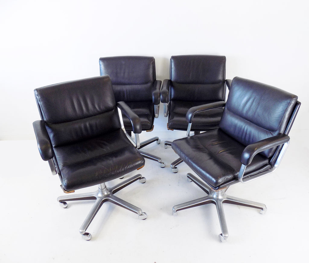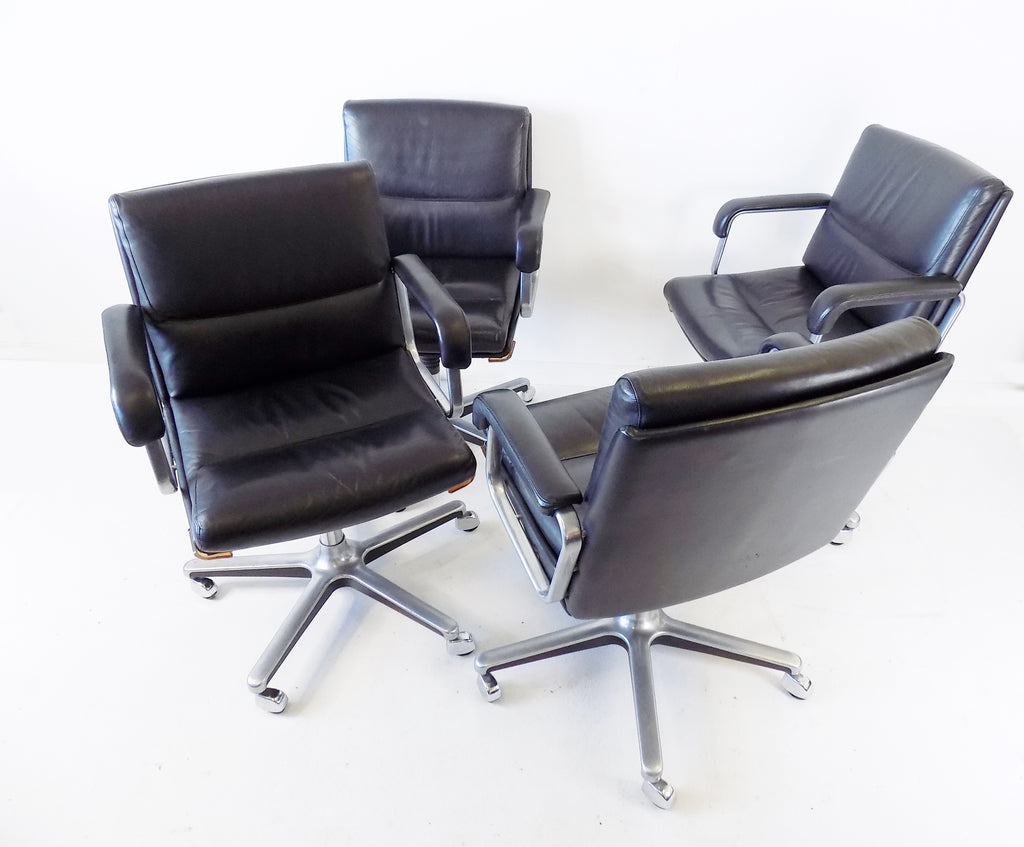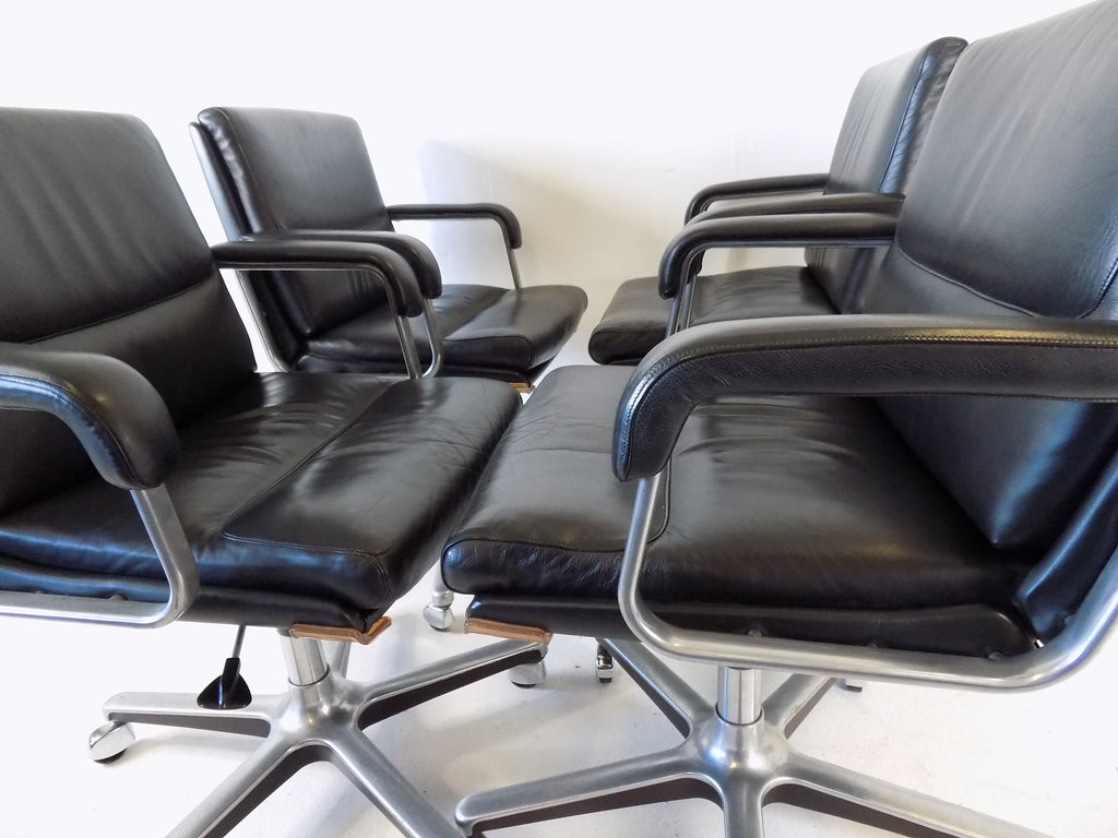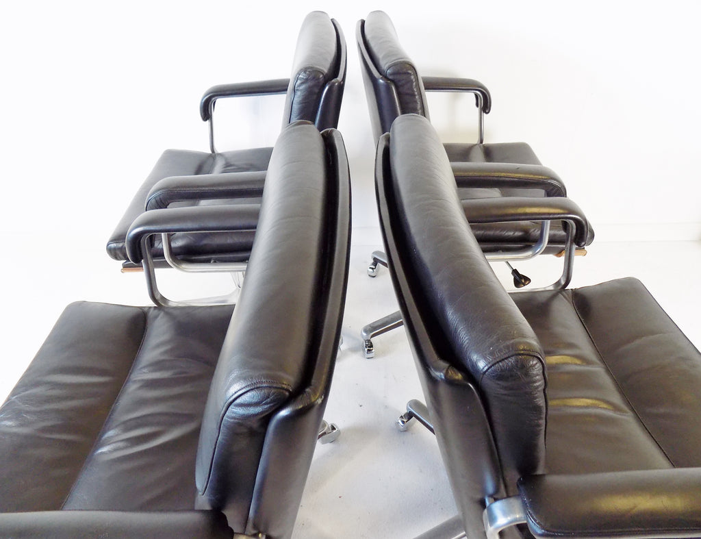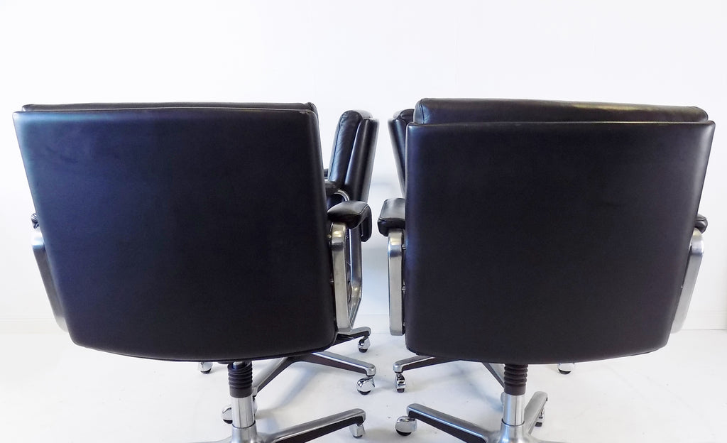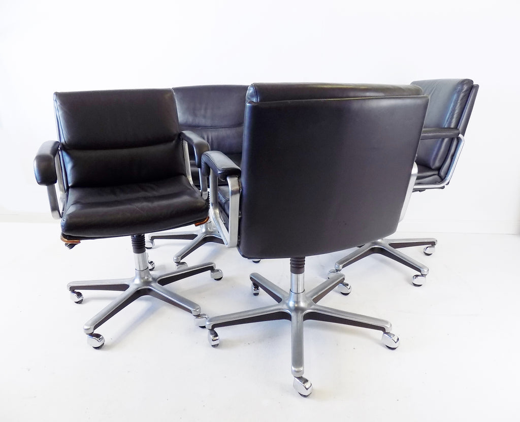 4개의 검은색 가죽 사무용 의자로 구성된 이 Drabert 세트는 최상의 상태를 유지하고 있습니다.