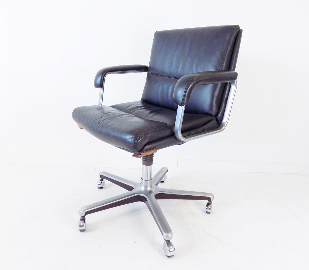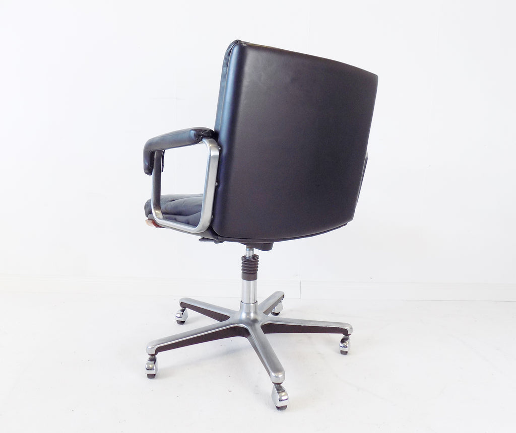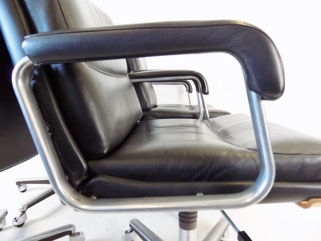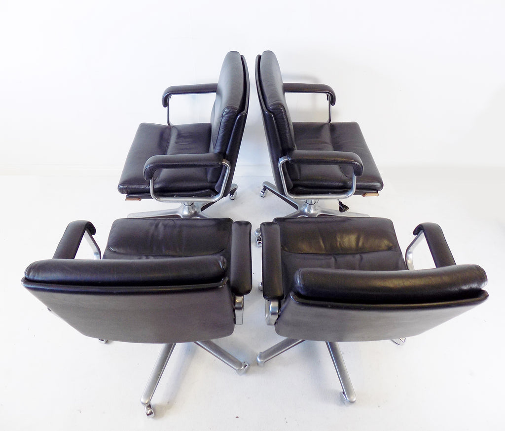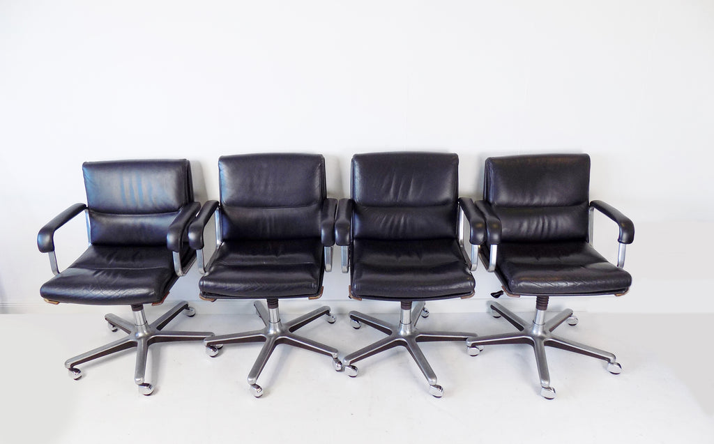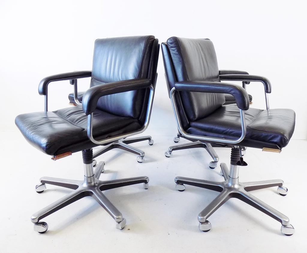 4개의 검은색 가죽 사무용 의자로 구성된 이 Drabert 세트는 최상의 상태를 유지하고 있습니다.