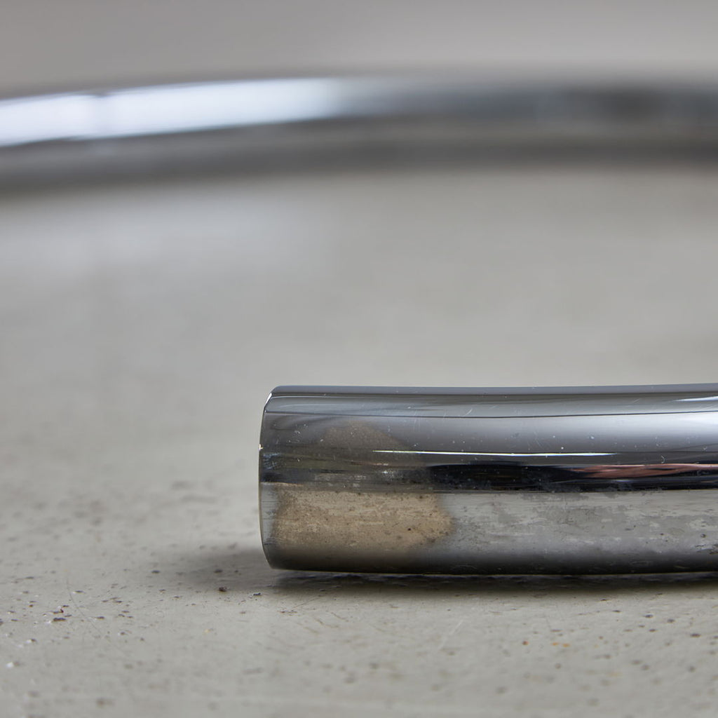 "Eileen Gray는 현대 운동의 선구자 중 한 명입니다. E-1027 조절식 테이블은 1927년에 디자인되었으며 마침내 20세기 위대한 가구 디자인의 전당에 자리 잡았습니다. 우아한 모양, 기능적 요소. 크롬 프레임, 원형, 테이블 상판은 유리로 되어 있으며, 사용 기간과 사용에 따른 약간의 마모 및 긁힘 흔적이 있어 매우 좋은 상태입니다.