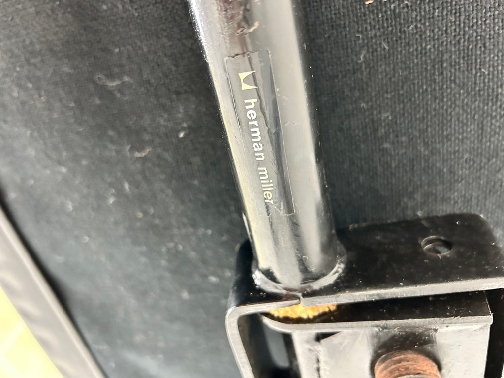 알루미늄 베이스와 바퀴가 달린 가죽 의자. 좌석 아래에 허먼 밀러(Herman Miller)가 찍혀 있습니다. 의자가 저절로 켜지고 뒤로 젖혀집니다. 좌석 높이: 53cm. 시간과 나이로 인한 마모.