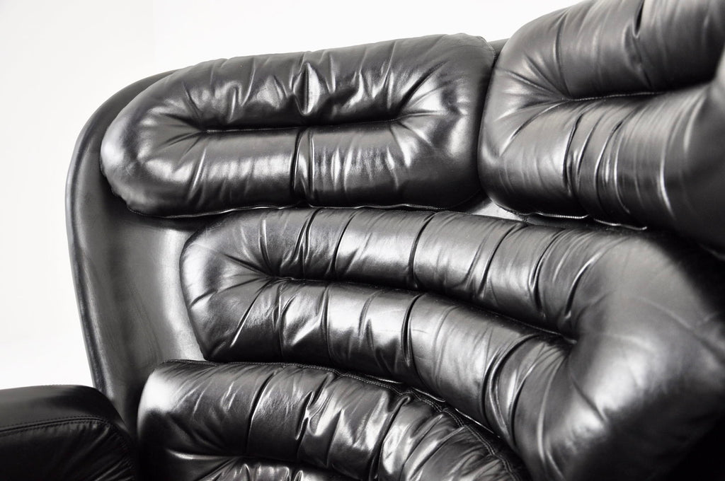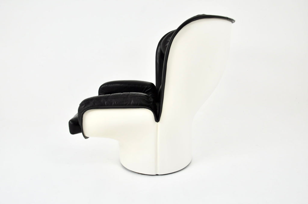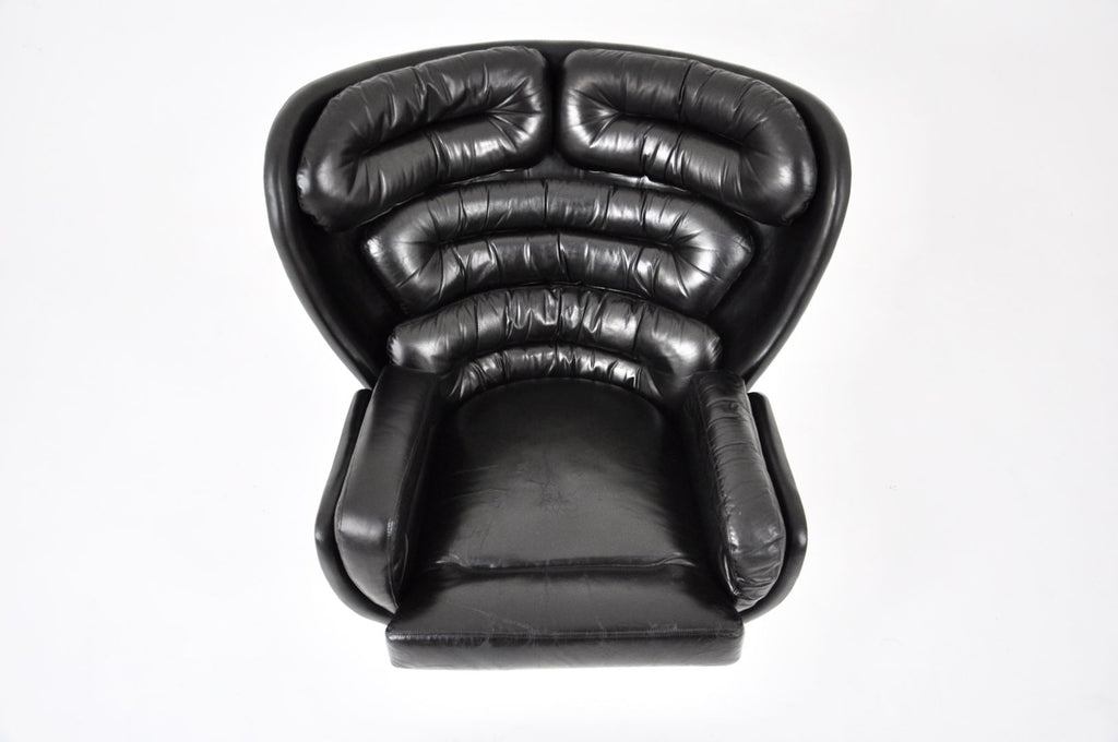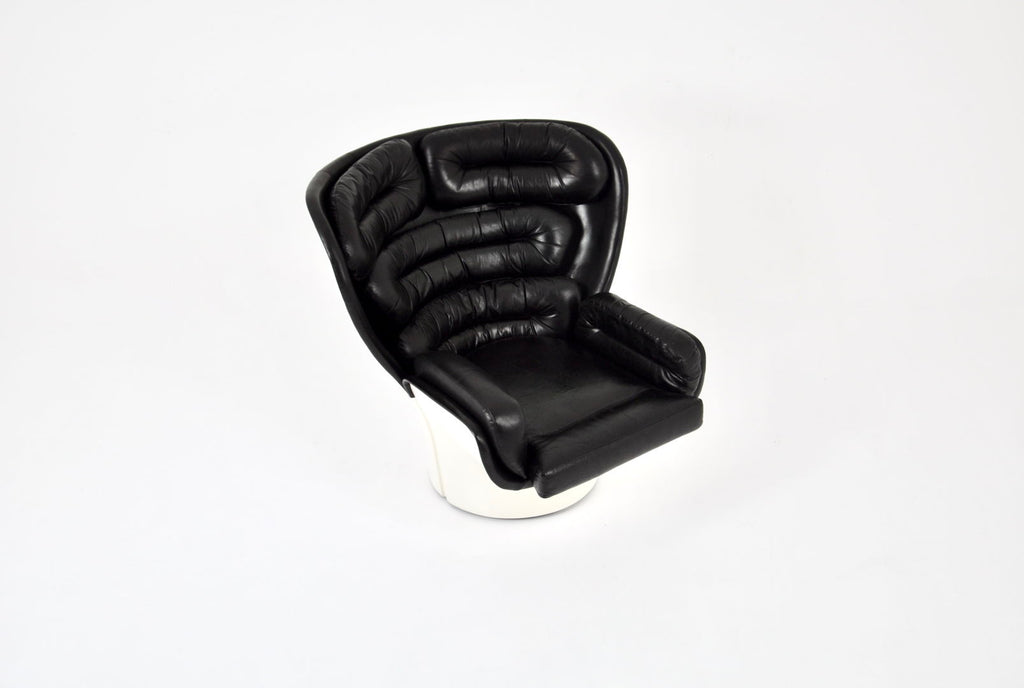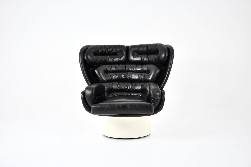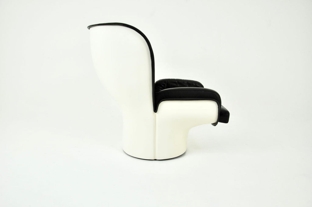 Swivel armchair in black leather and white shell by Joe Colombo. Elda model. Seat height 39cm. Wear due to time and age.