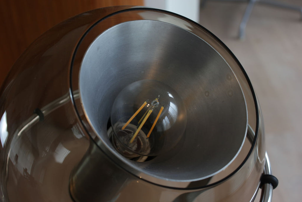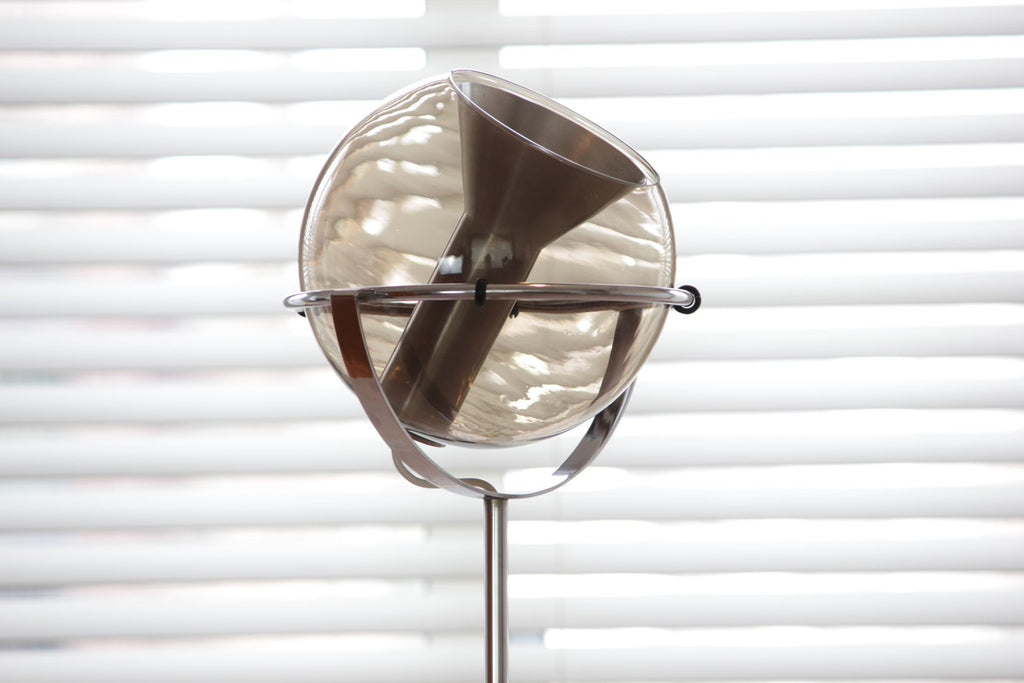 Frank Ligtelijn의 Raak Circa 1960 초판 'Globe 2000' 네덜란드 금속 및 스모크 유리 높이 123cm, 너비 34cm, 높이 조절 가능