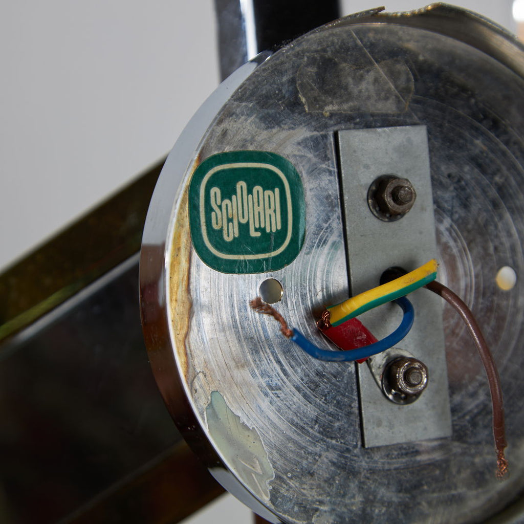 이탈리아 기업가이자 디자이너인 Angelo Gaetano Sciolari의 조명 디자인은 특히 그의 화려한 1970년대 작품에 대한 새로운 세대의 감탄이 커지면서 다시 주목을 받았습니다. 이 상징적인 벽 램프는 크롬과 금도금 마감이 혼합된 세 개의 우아한 모양의 가지가 특징입니다. 모든 기능을 갖춘 제품으로, 금속 부분에 가벼운 긁힘과 작은 마모가 있습니다. 실제 스크래치는 사진보다 훨씬 미묘하니 참고해주세요.