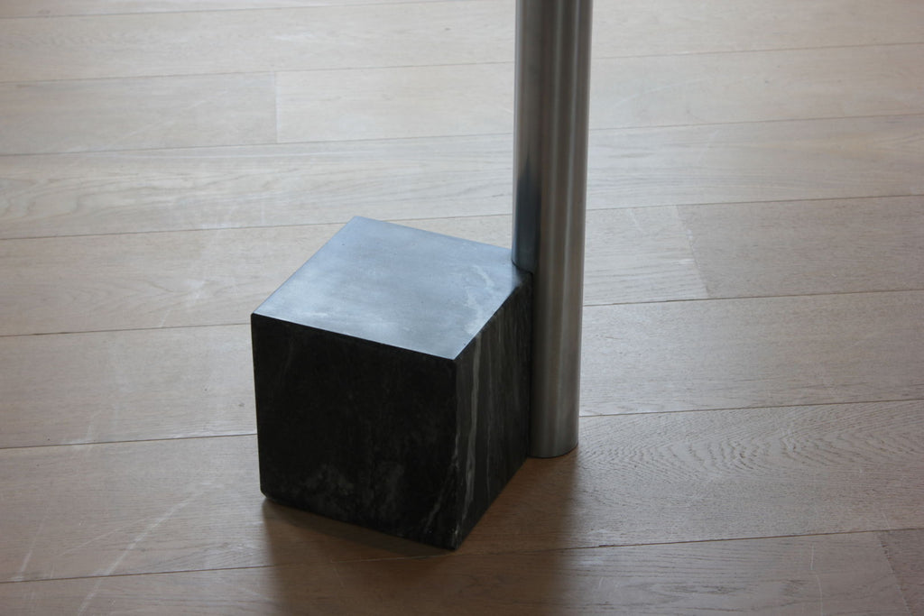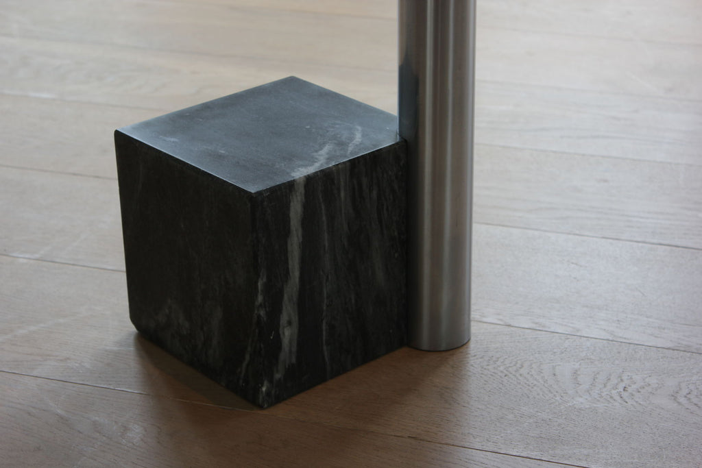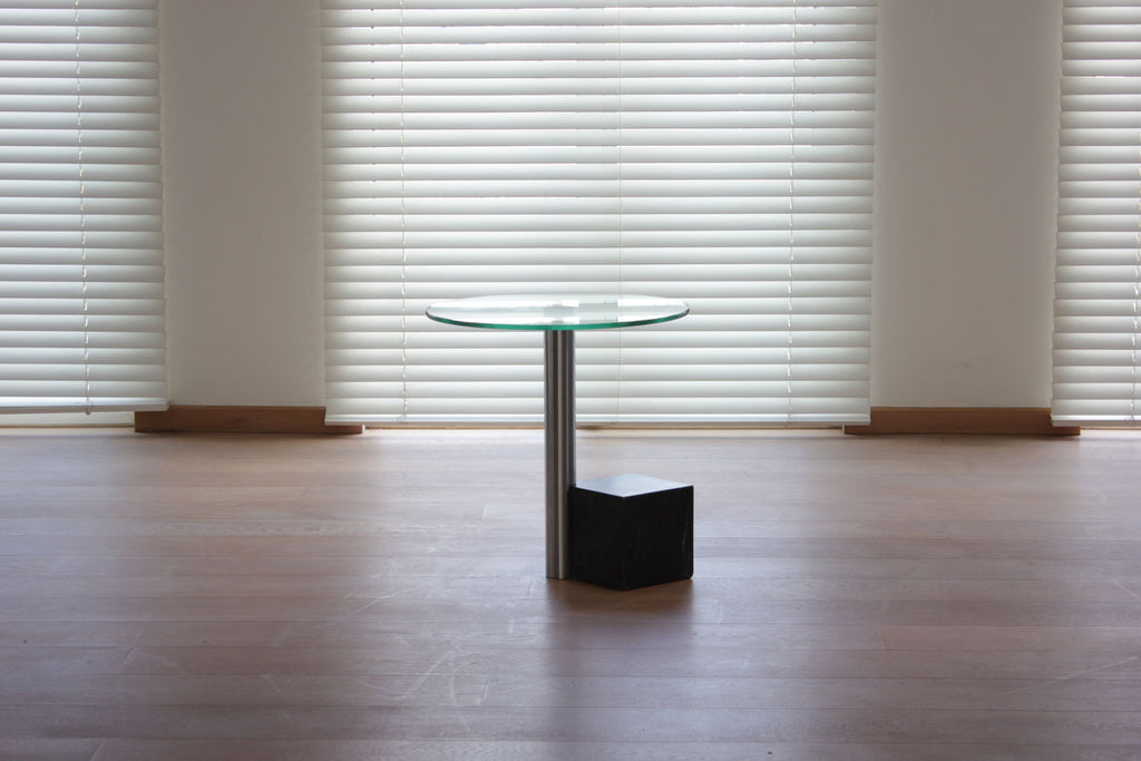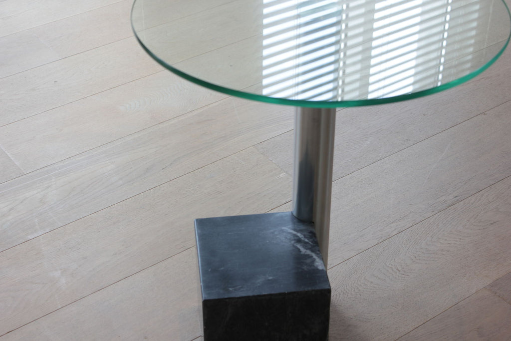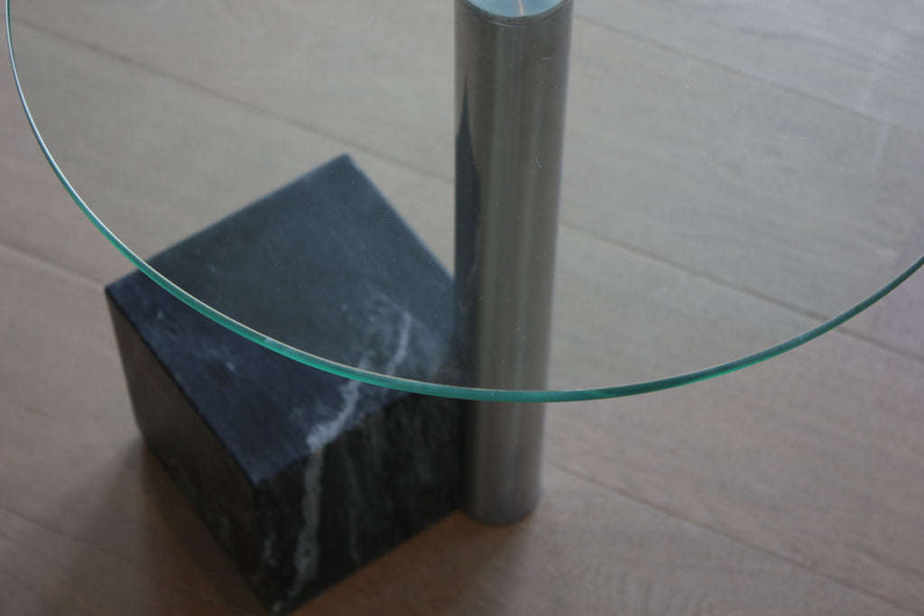 Metaform을 위한 Hank Kwint의 사이드 테이블 1980년대 "HK2" 네덜란드 금속, 대리석 및 유리 높이 50cm, 직경 52cm