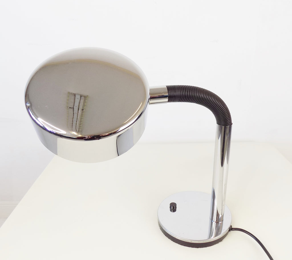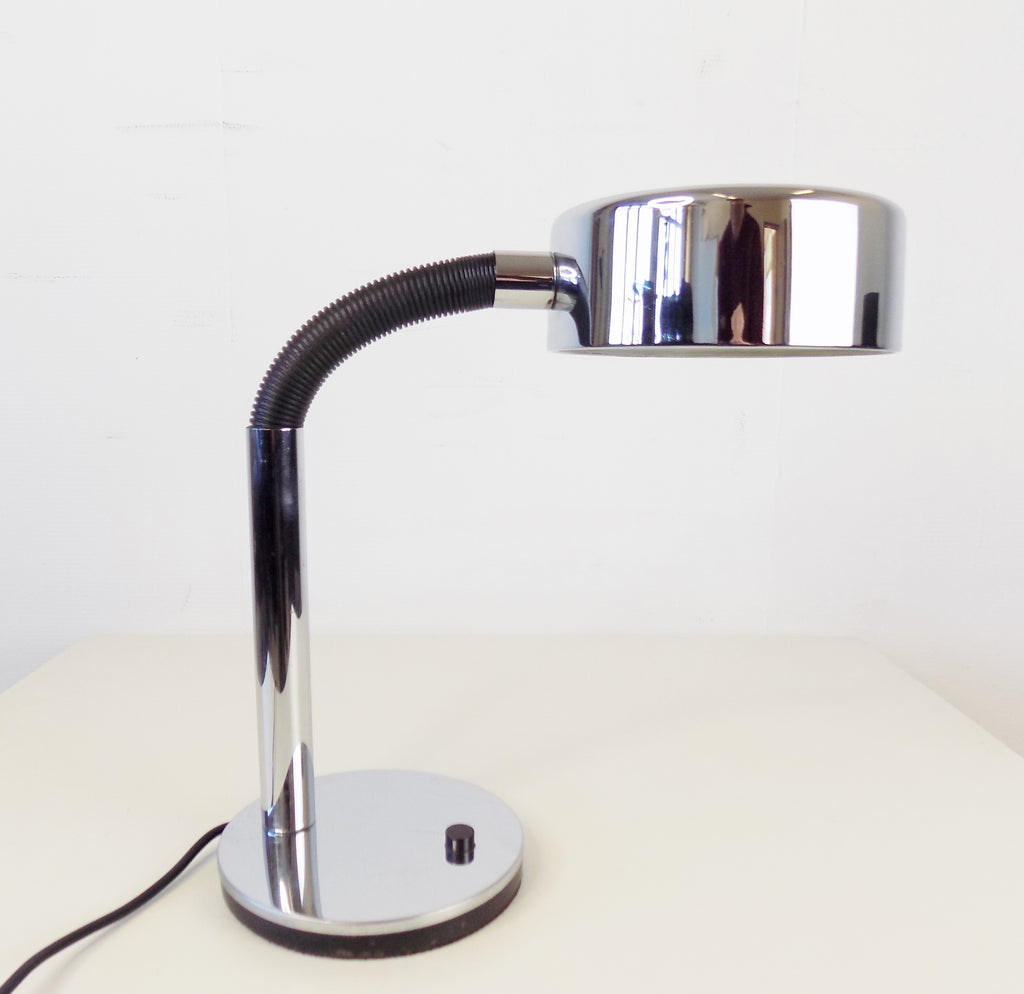 상태가 아주 좋은 크롬 도금된 Hustadt 구즈넥 테이블 램프입니다.