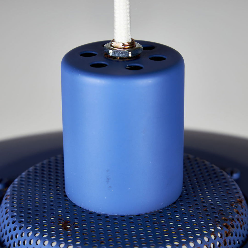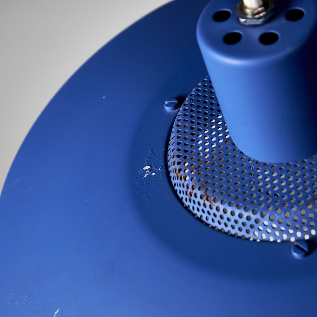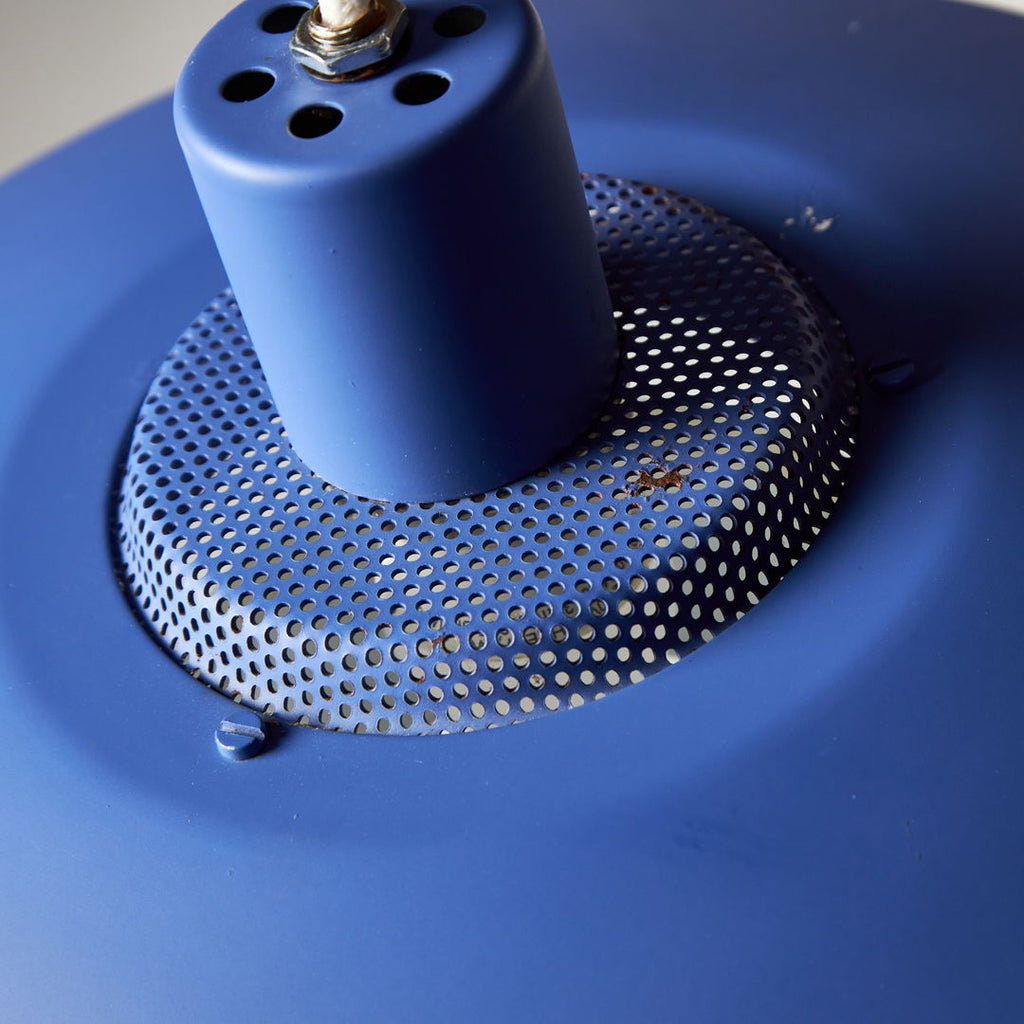 1980년대 Jeka 알루미늄 펜던트. 알루미늄 갓에 여러 번의 페인트 마모, 긁힘 및 녹이 발생했습니다. 식탁이나 무드 조명으로 이상적입니다.