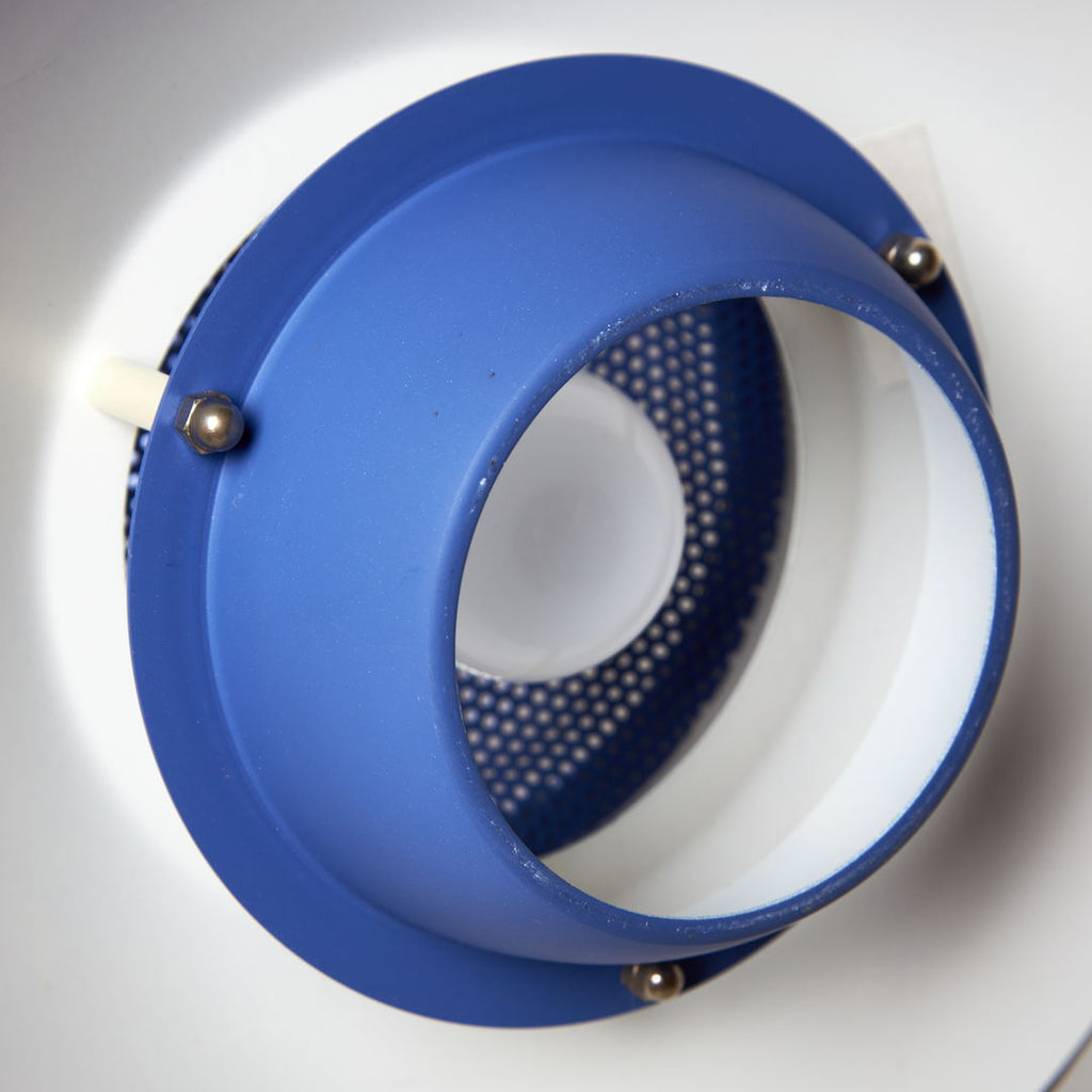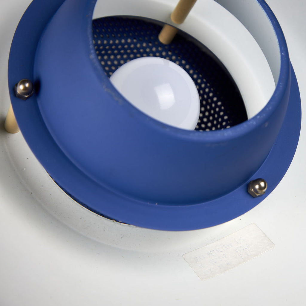 Jeka aluminum pendant from the 1980s. With several paint wear, scratches and rust on the aluminum lampshade. Ideal for dining tables or as mood lighting.