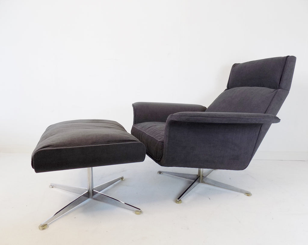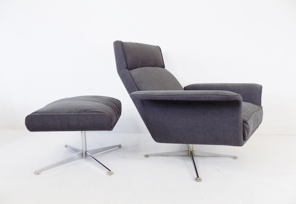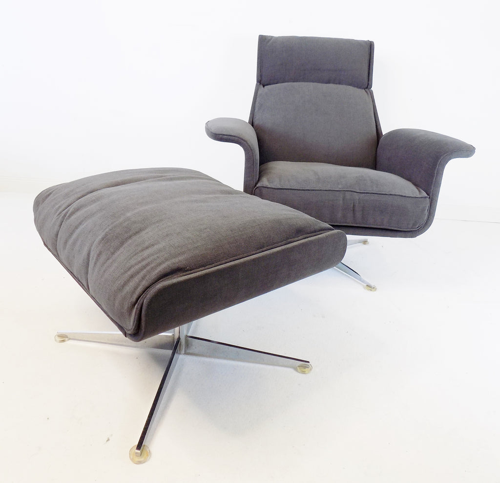 Kaufeld Siesta 62 Gray Lounge Chair with Ottoman by Jacques Brule