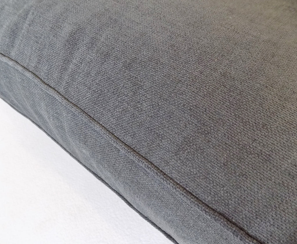 고급 회색 천으로 전문적으로 완전히 다시 덮개를 씌웠습니다. 쿠션뿐만 아니라 안락의자의 옆면과 등받이 부분도 덧씌웠습니다.