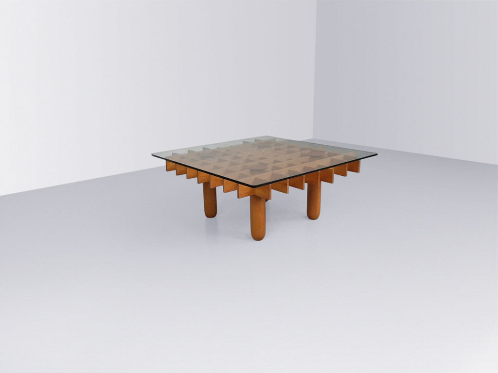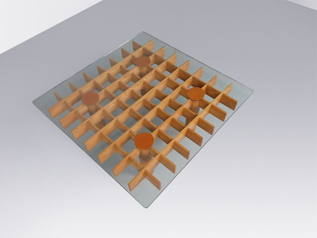 Kyoto graphic maple and glass coffee table by Gianfranco Frattini for Knoll 1970s