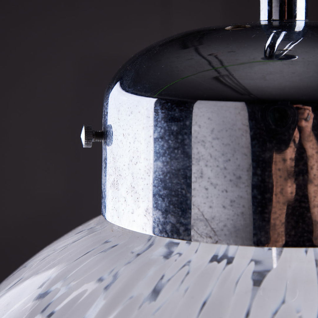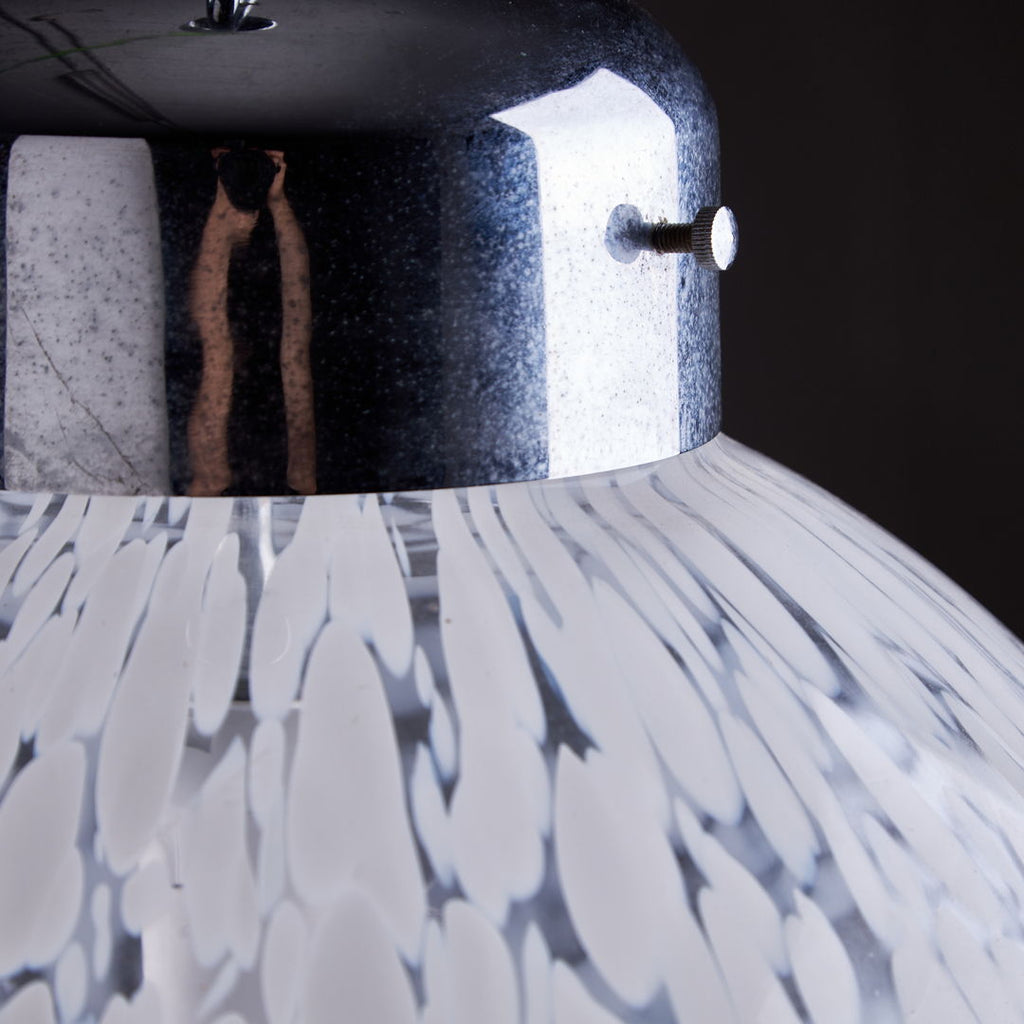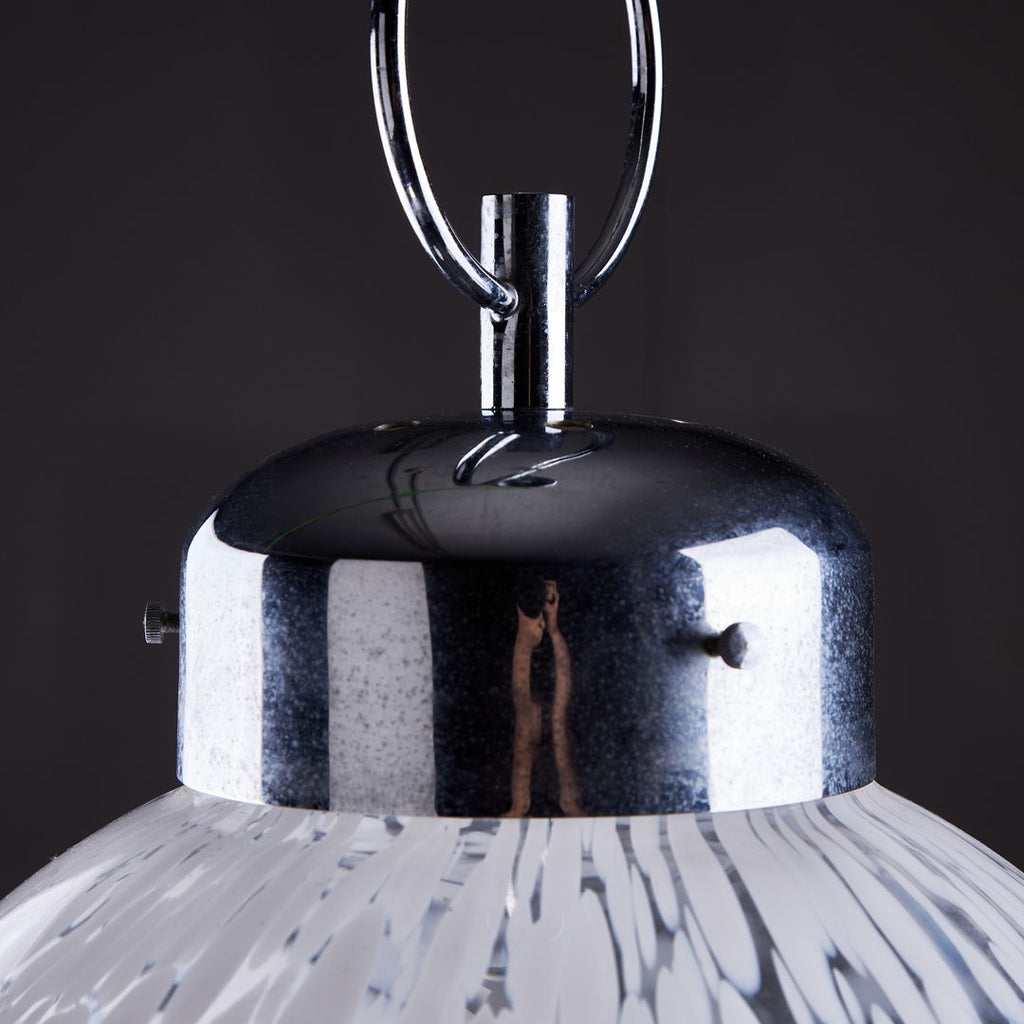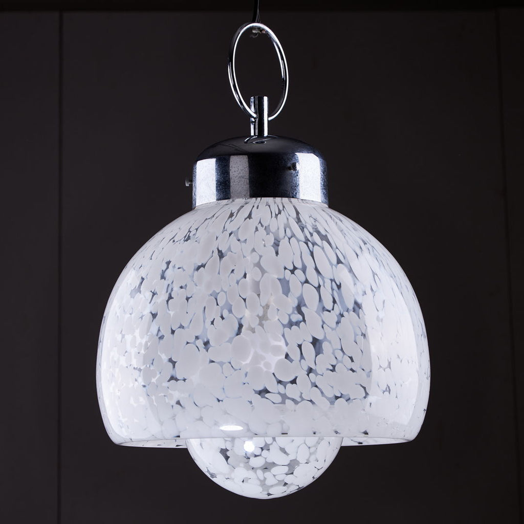 Large, heavy, Murano glass pendant designed by Carlo Nason for Mazzega in the 1960s. Its shape is hemispherical, with a small sphere in the middle. The item is fully functional and in a beautiful condition, the adjustable chrome body shows minor spots and scratches due to age.
