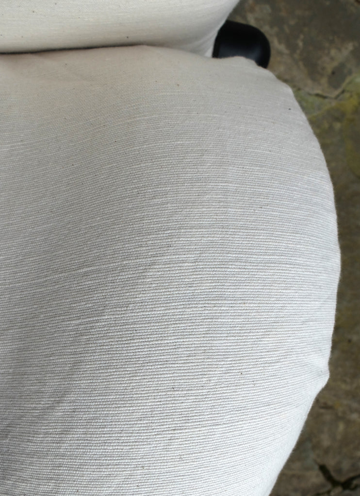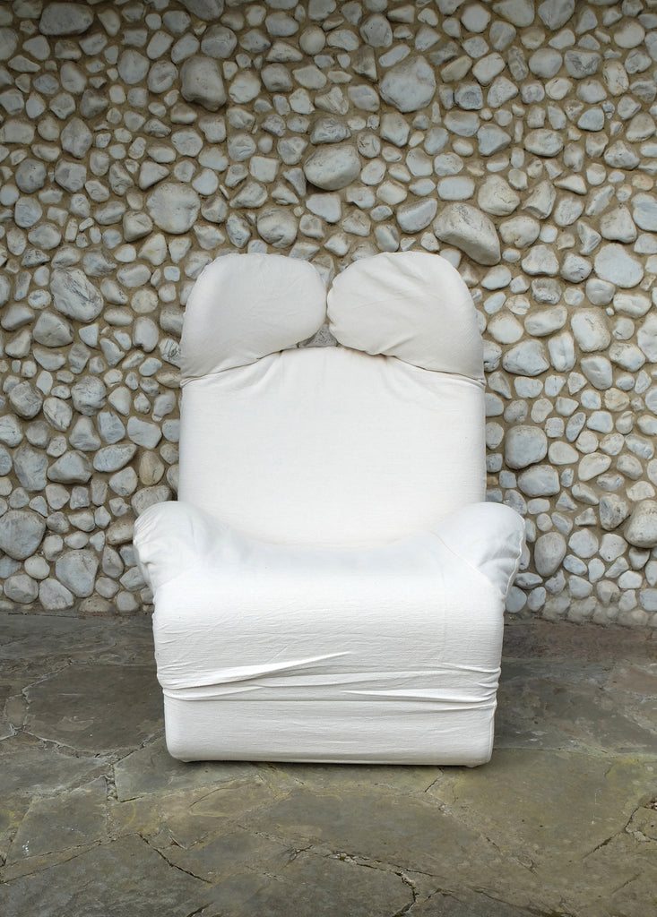 면으로 만든 새 덮개가 있는 80년대 의자. 참고: 디자이너 = Toshiyuki Kita