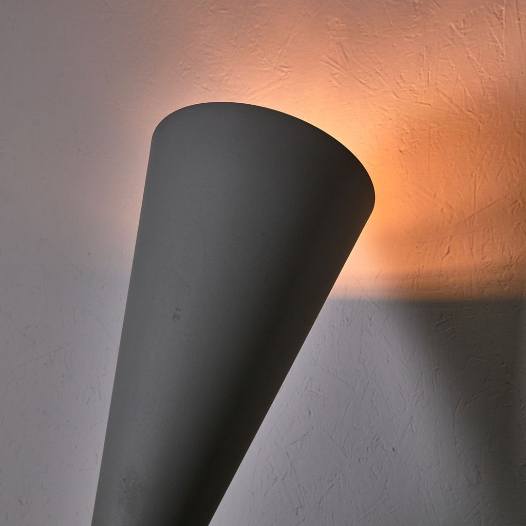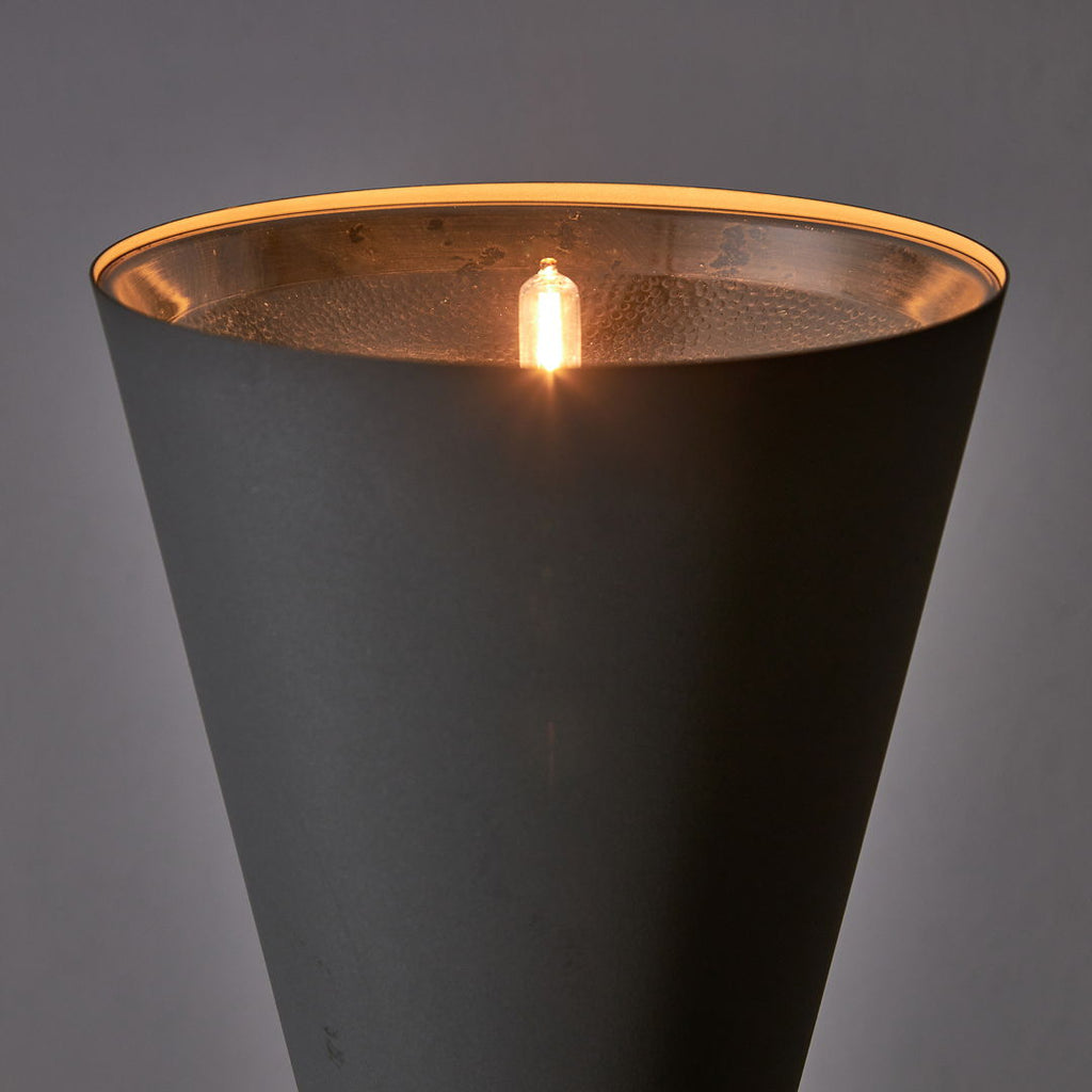 Luminator is one of the first projects that Pietro Chiesa created for Fontana Arte, in 1933. This unique floor lamp incorporates a slender metallic stem that expands into a cone, enclosing the lighting component within. Resting on a circular base, this lamp gives an unparalleled sense of abstract simplicity and flawlessness, making it one of Pietro Chiesa's most remarkable designs. During its time, the Luminator was an innovative and pioneering design, and is widely recognized as the initial floor lamp in design history to provide indirect lighting. Scratches and wear can be spotted on the surfaces.