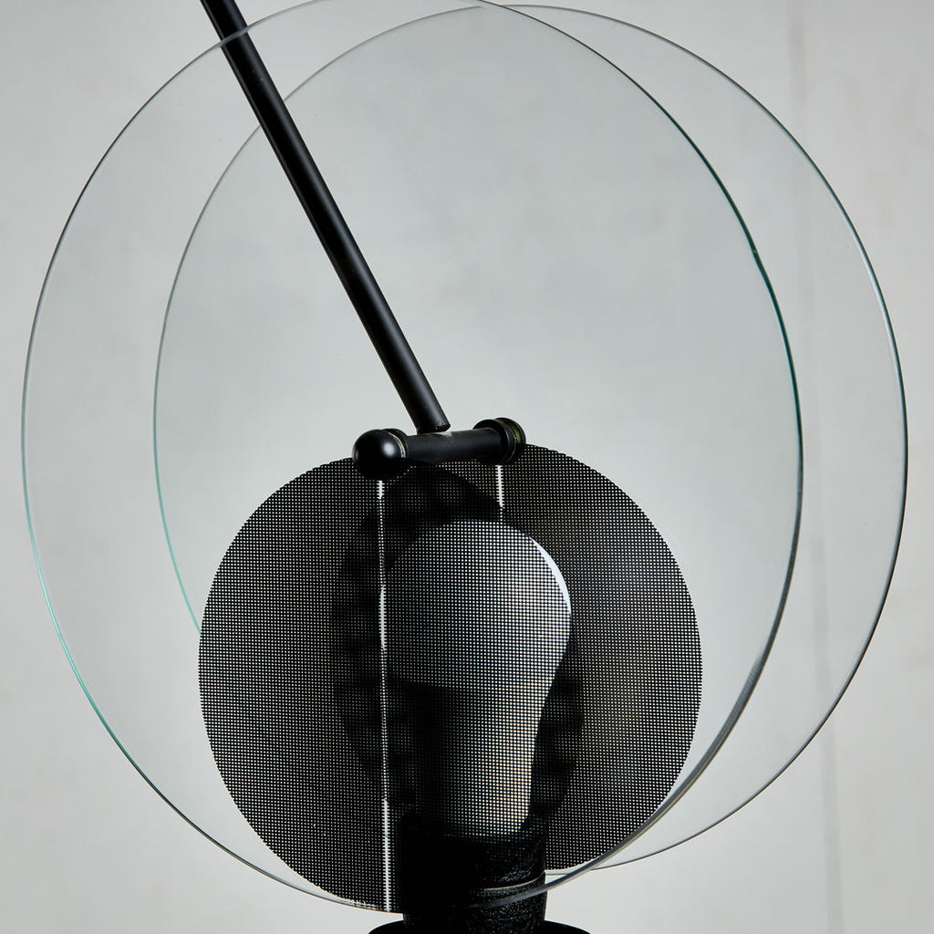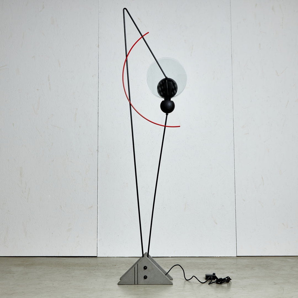 창의성과 결합된 절충주의. 이 멤피스 스타일 플로어 램프는 Relco를 위해 디자인되었으며 우주 시대를 충실하게 표현합니다.