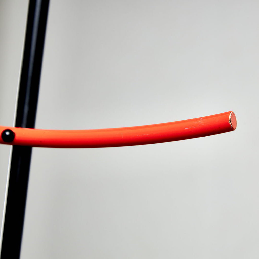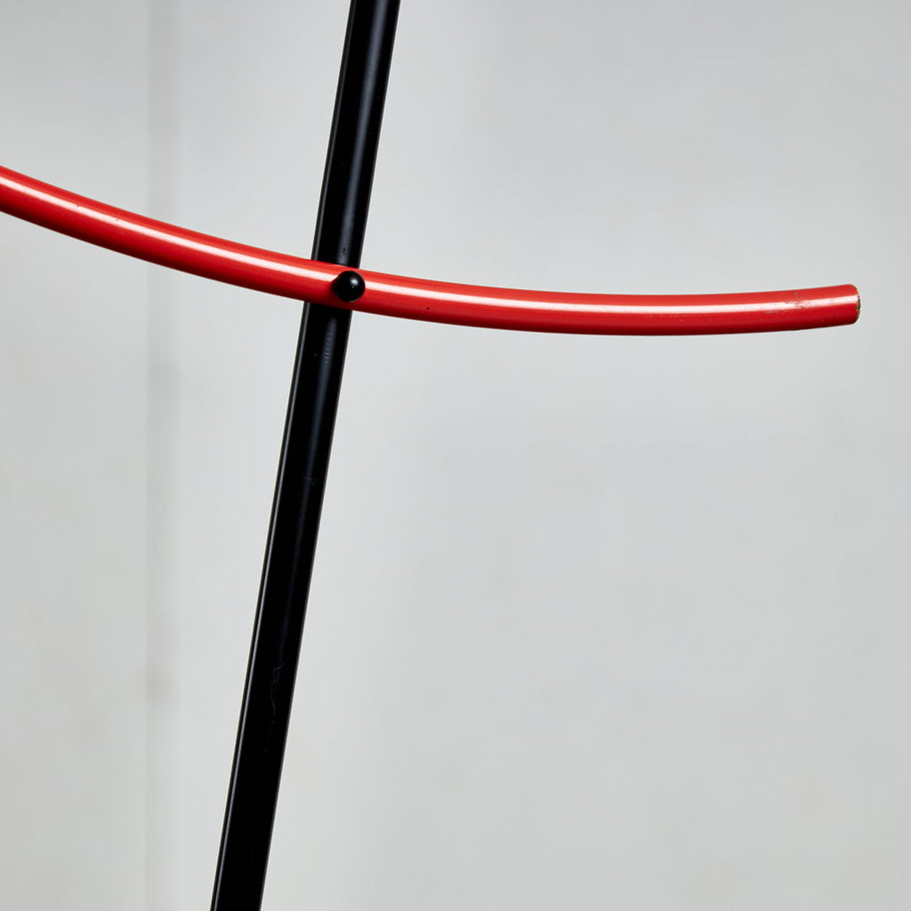 Eclecticism combined with creativity. This Memphis style floor lamp was designed for Relco, and faithfully represents the space age.