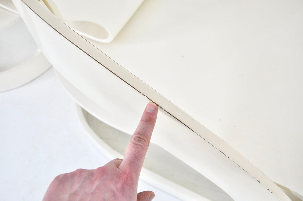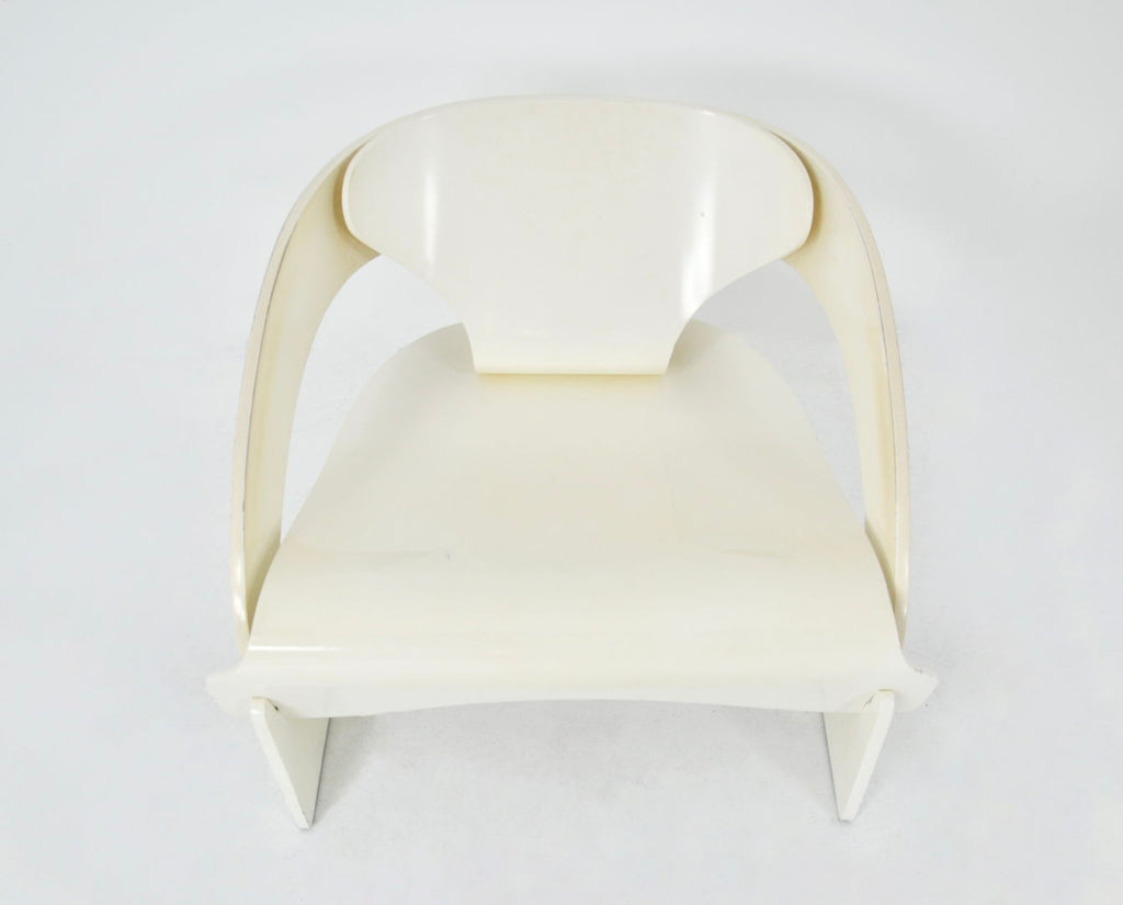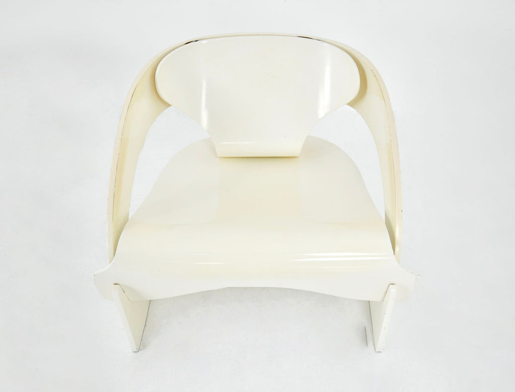 Joe Colombo가 디자인한 흰색 목재 안락의자 2개 세트, 모델 4801. 번호 121. 좌석 높이 34cm. 시간과 나이로 인한 마모.