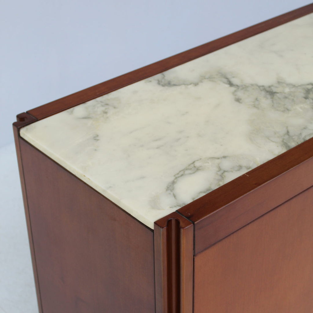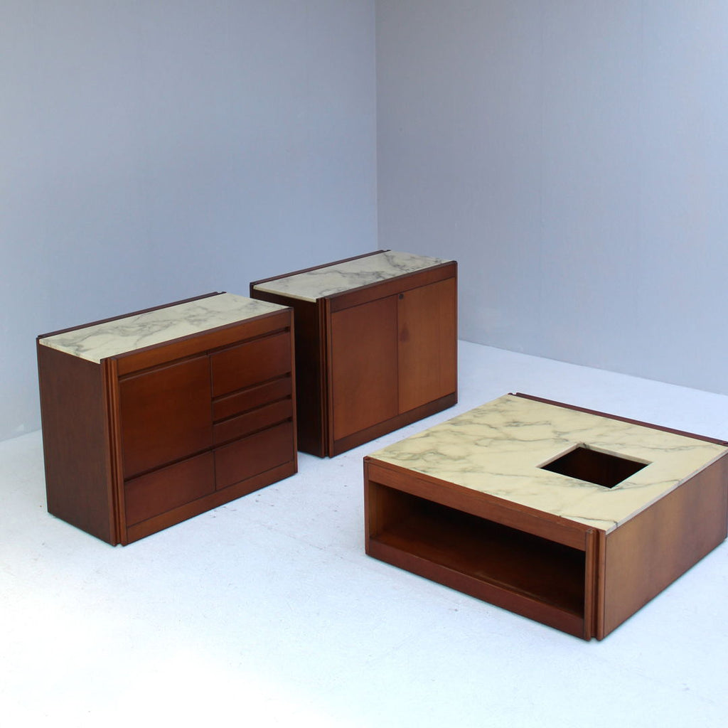 Model 4D Sideboard set and coffee table designed by Angelo Mangiarotti for Molteni, 1960s. Marble top and solid walnut wood. Wheels underneath each piece.