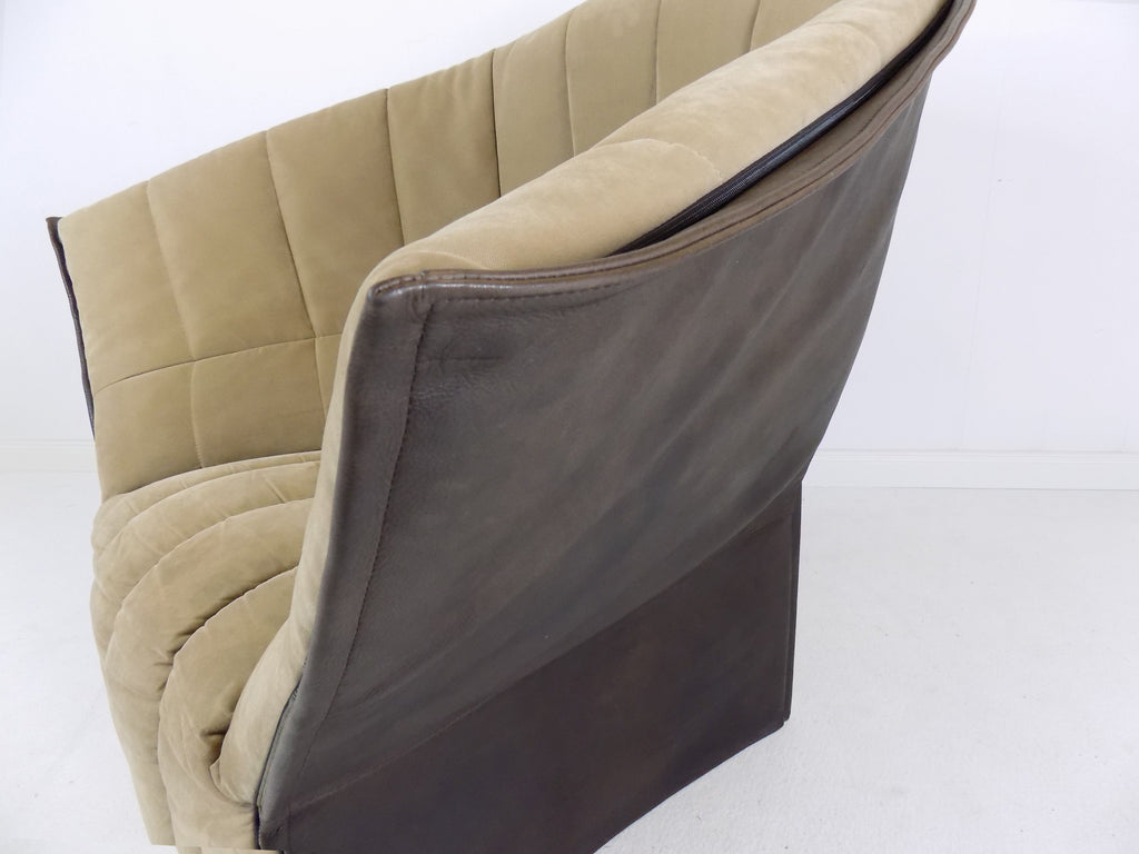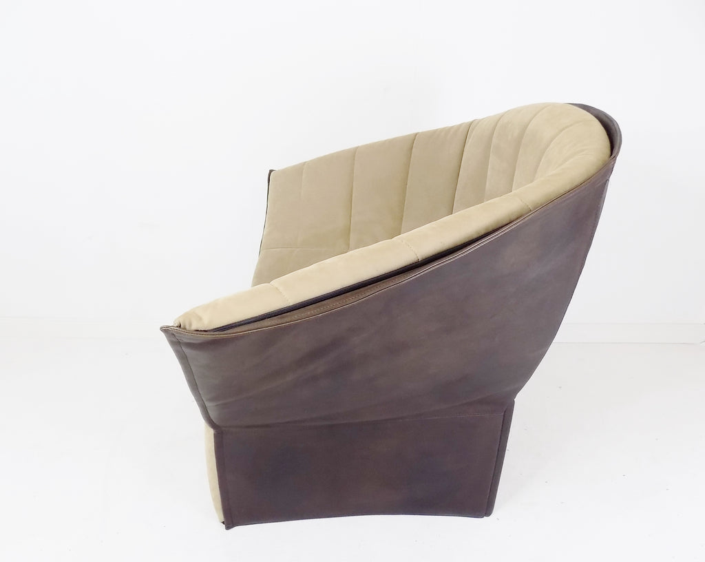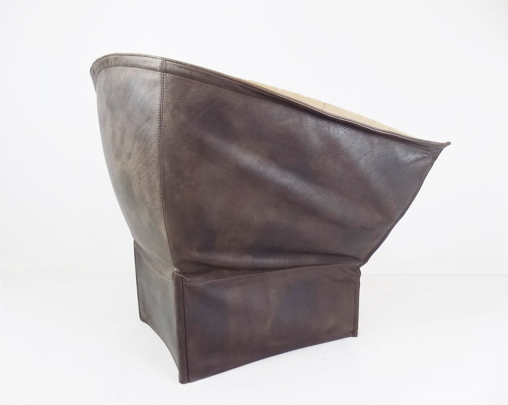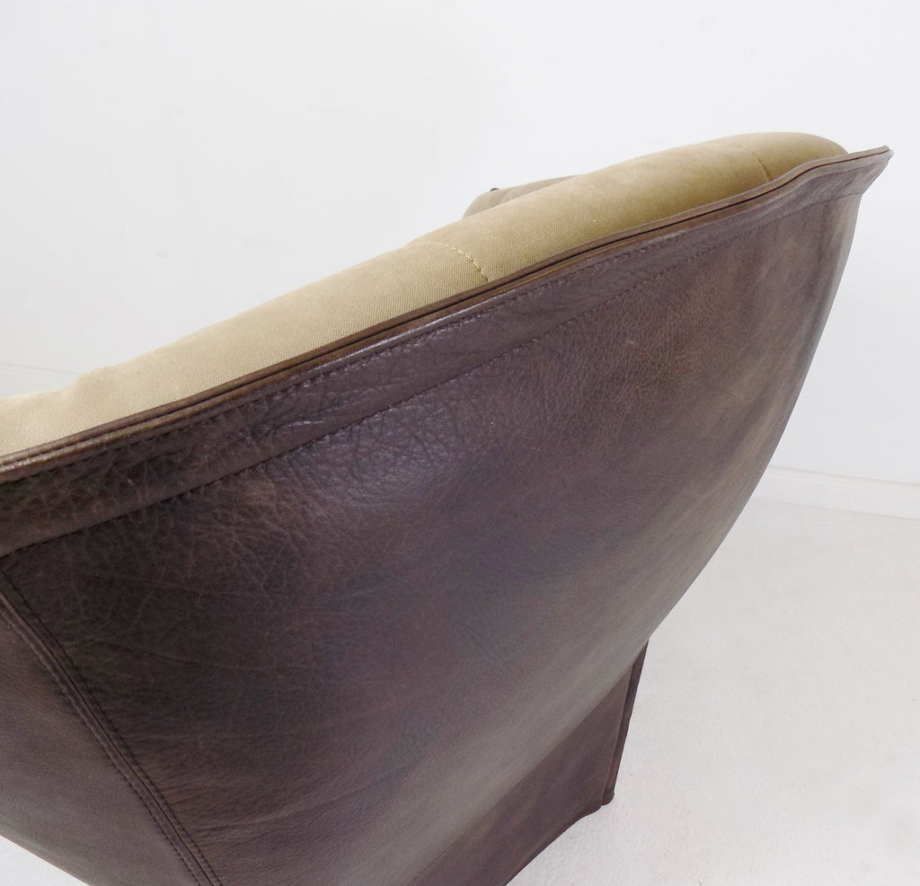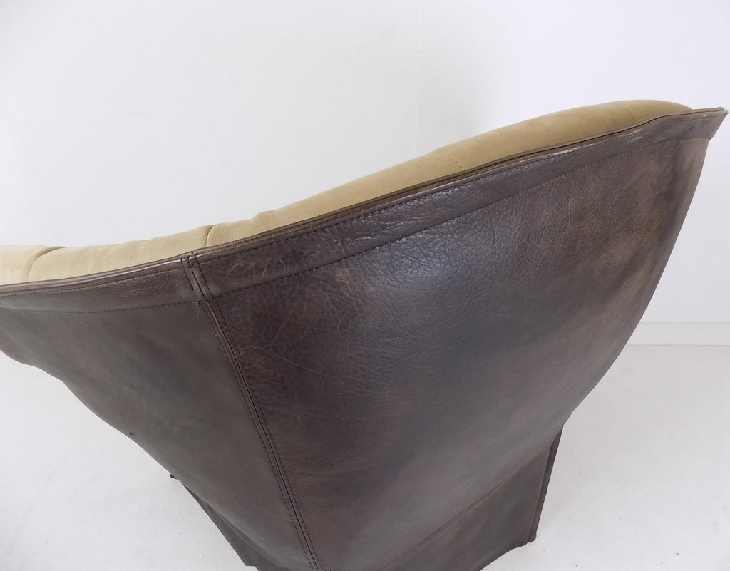 갈색 가죽 외부 커버와 밝은 갈색 시트 커버가 조화롭게 매치된 매력적인 디자인의 Moel 라운지 체어.