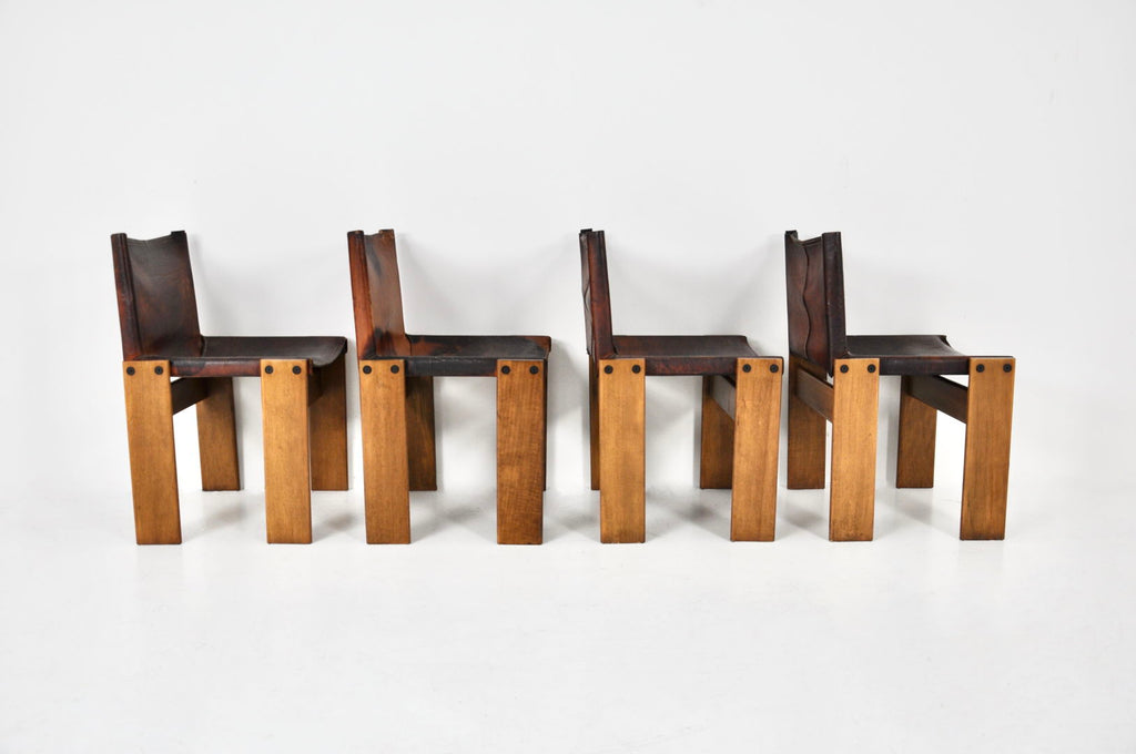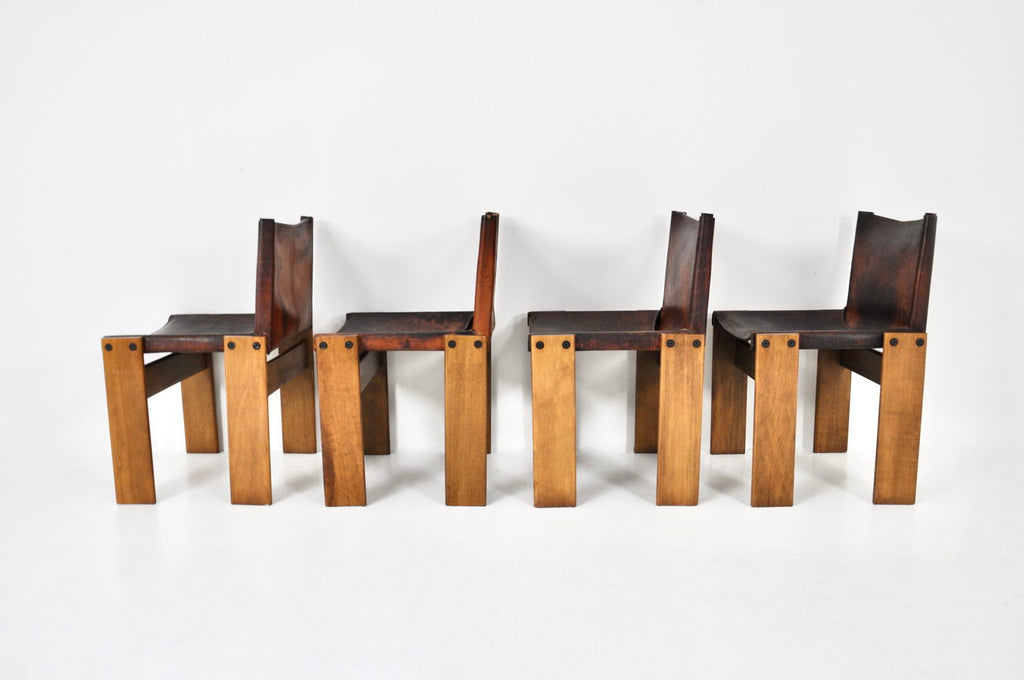 Monk Dining Chairs by Afra & Tobia Scarpa for Molteni, 1970s, Set of 4