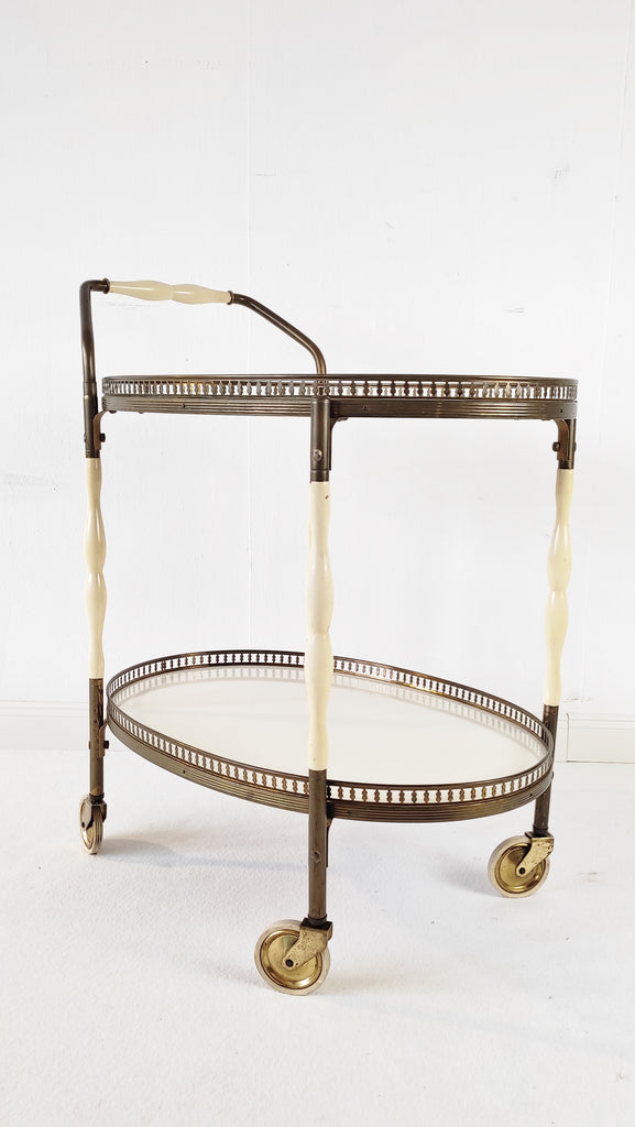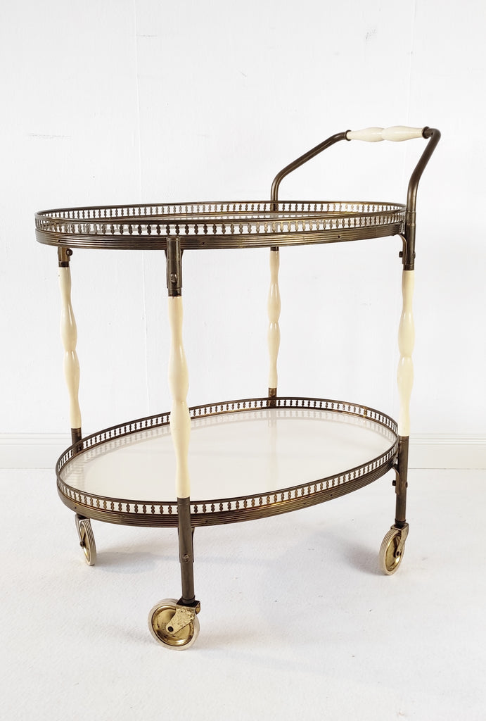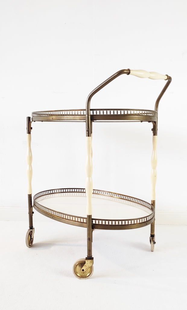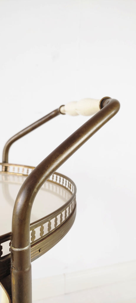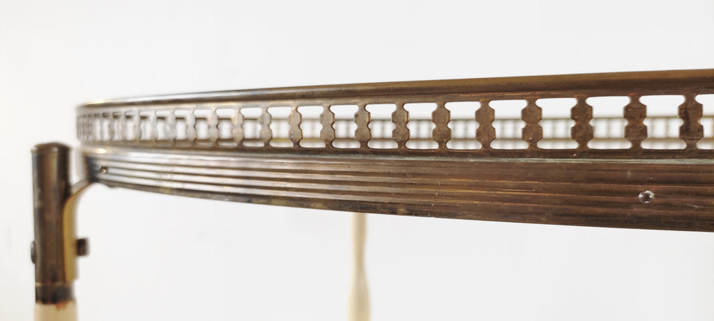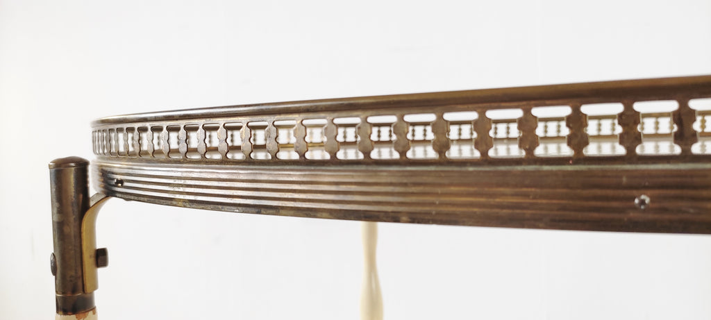 화려한 황동 요소와 경계를 이루는 2층의 아름다운 나무.