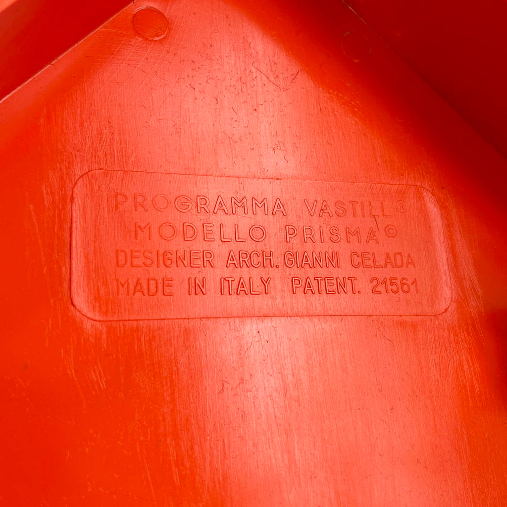 프로듀서 - Programma-Vastill 디자이너 - Gianni Celada 모델 - Prisma Planter 디자인 기간 - 70년대 측정 - 폭 46cm x 깊이 35cm x 높이 34cm 소재 - 플라스틱 색상 - 오렌지 댓글 - 연령 및 사용에 따른 가벼운 착용.