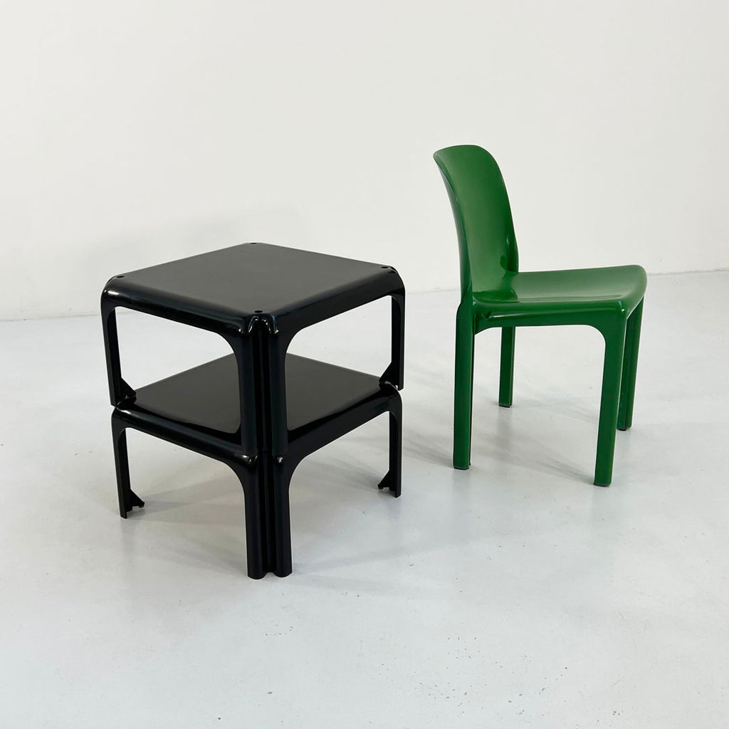 Pair of Black Elena Stacking Tables by Vico Magistretti for Metra, 1970s