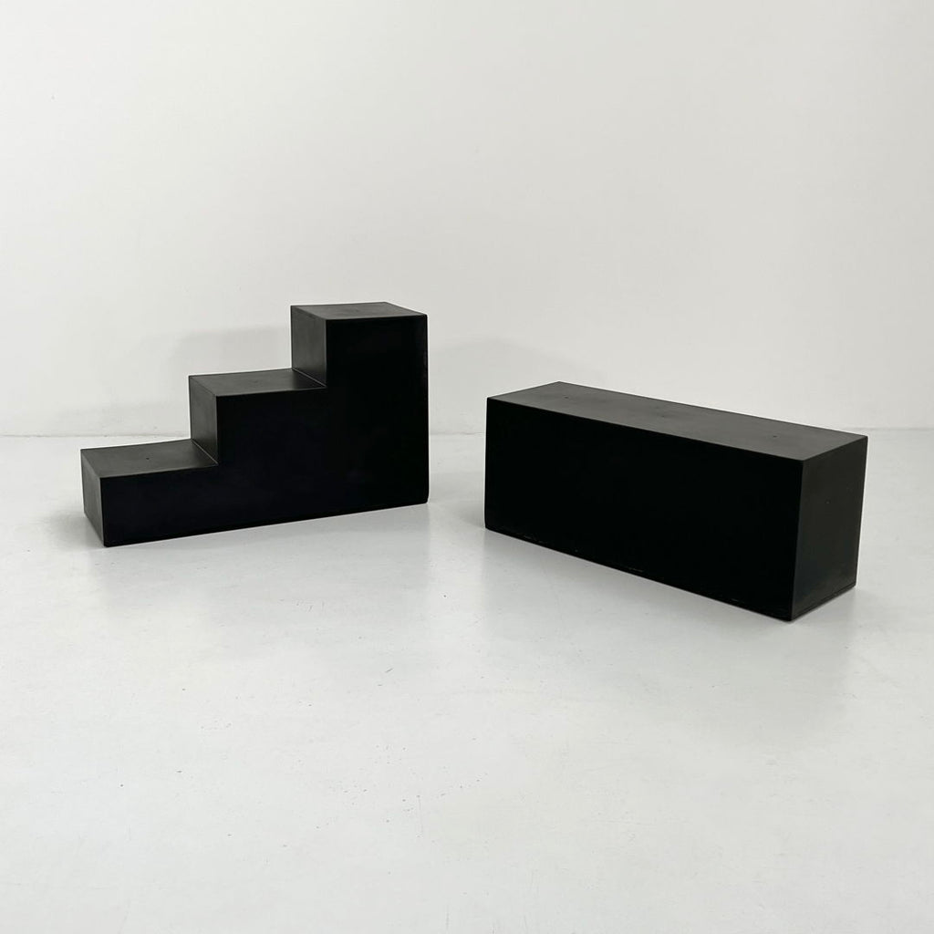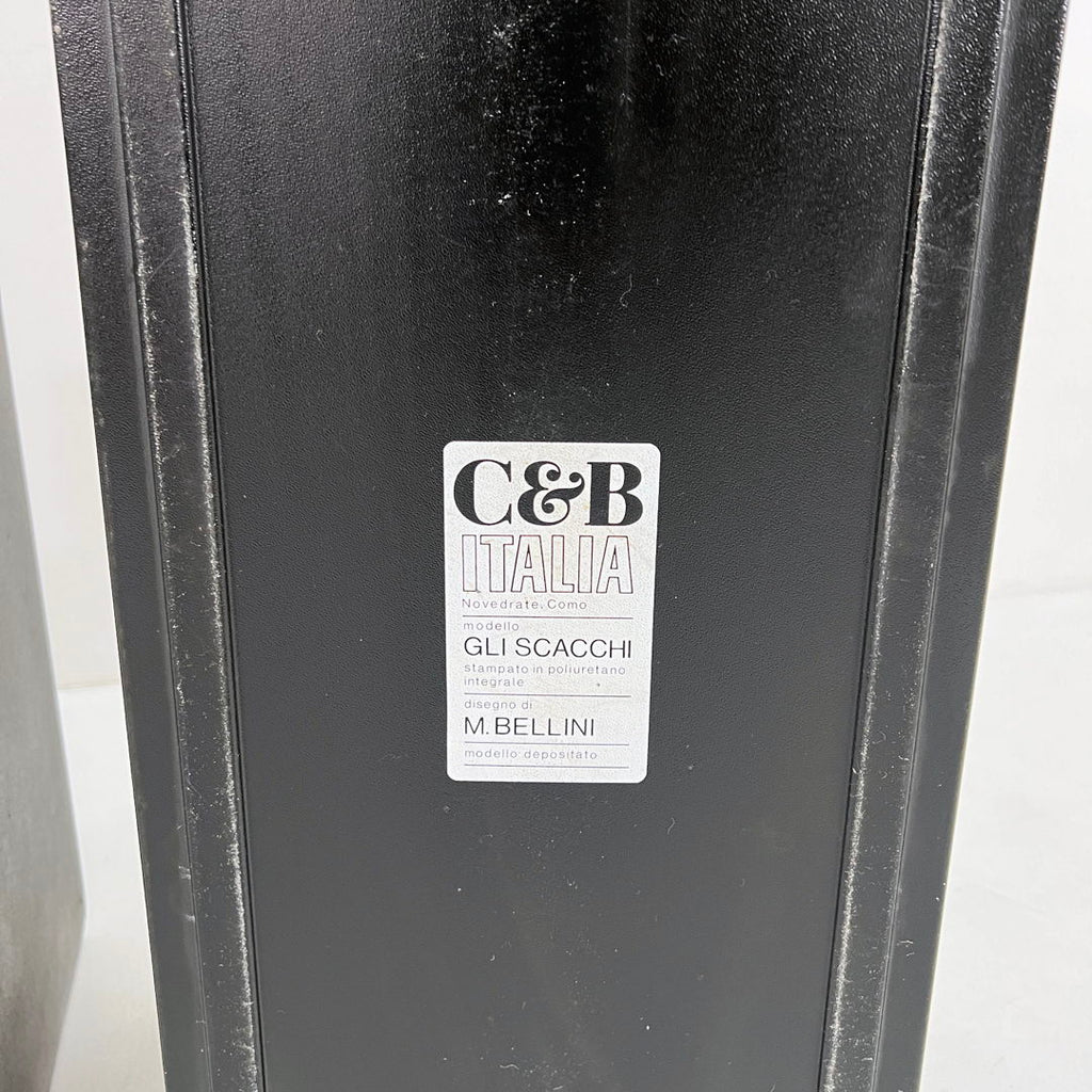C&B Italia를 위한 Mario Bellini의 Gli Scacchi 커피 테이블 쌍, 1970년대 디자이너 - Mario Bellini 프로듀서 - B&B Italia 모델 - Gli Scacchi 커피 테이블 디자인 기간 - 70년대 치수 - 폭 90cm x 깊이 31cm x 높이 37cm 재질 - 폴리우레탄 색상 - 블랙 상태 - 좋은 코멘트 - 연식 및 사용감에 따른 가벼운 착용감입니다. 특히 글라이더 근처의 플라스틱에 약간의 밝은 변색이 있습니다. 세부 사진을 참조하세요.