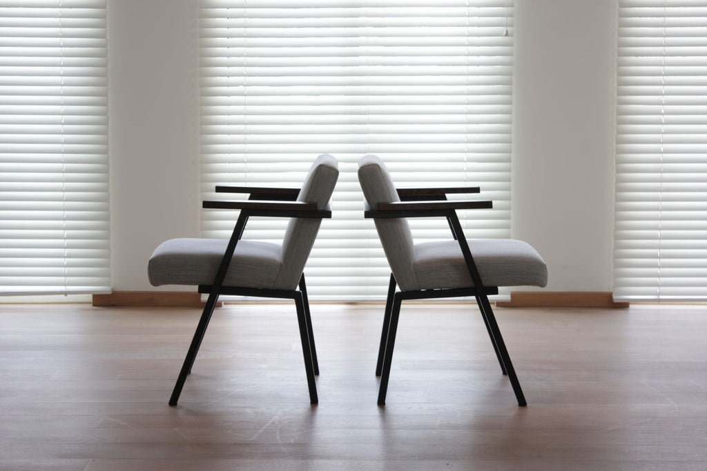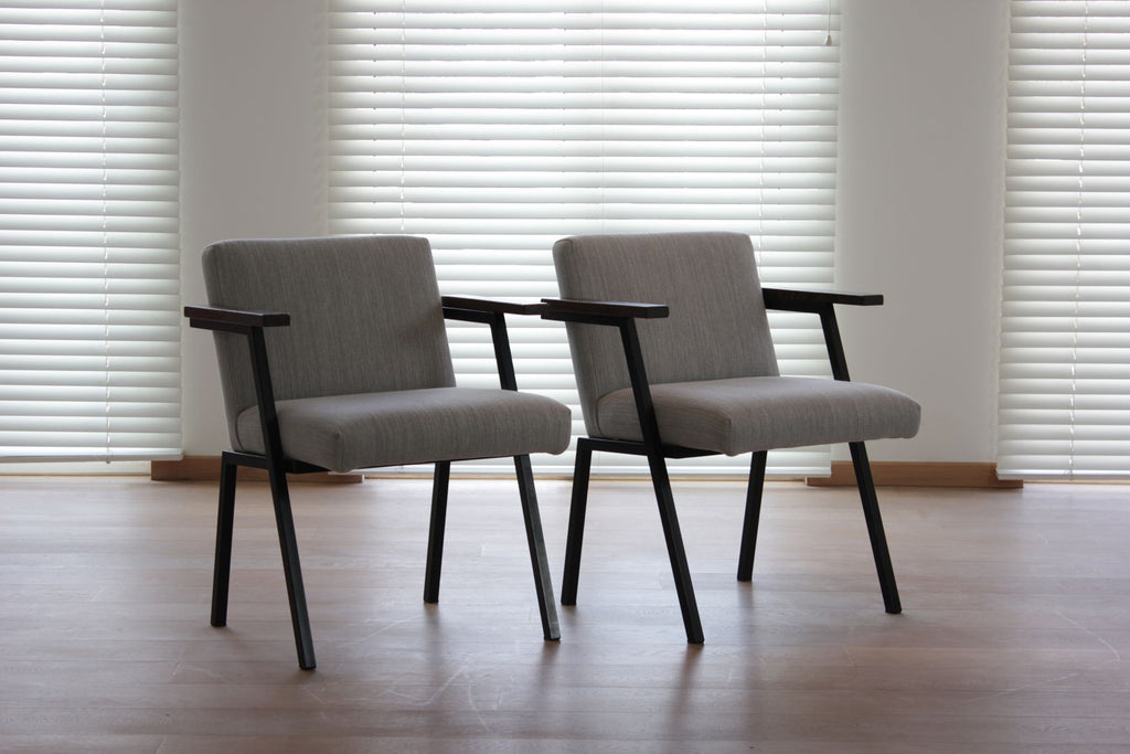 't Spectrum 1960년대용 Martin Visser의 안락의자 쌍 1964~1969년 네덜란드에서 생산된 희귀한 "SC63.9" 모델 금속 및 회색 실내 장식 높이 78cm, 너비 64cm, 깊이 57cm