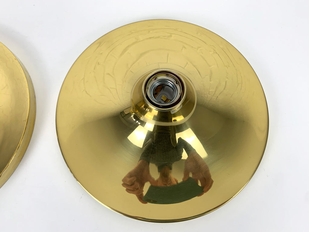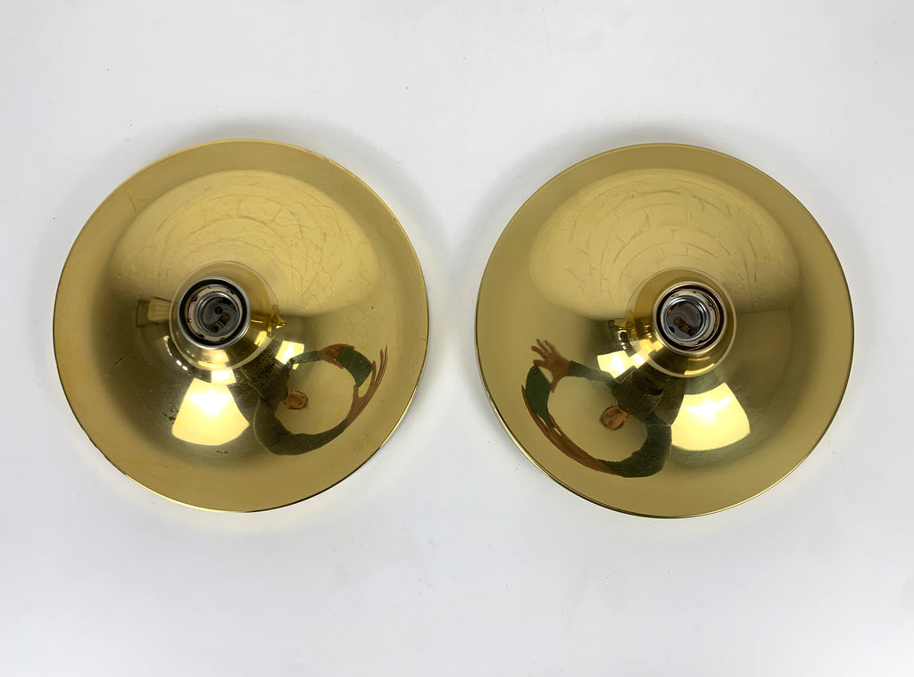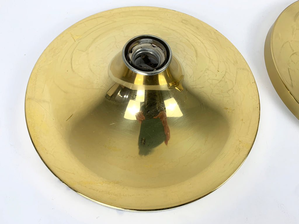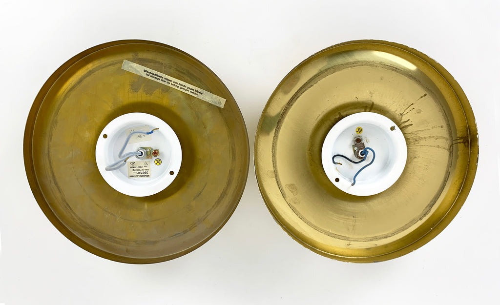 Pair of Space-Age Golden Sconces Flush Lights, Sölken-Leuchten Germany, 1970s