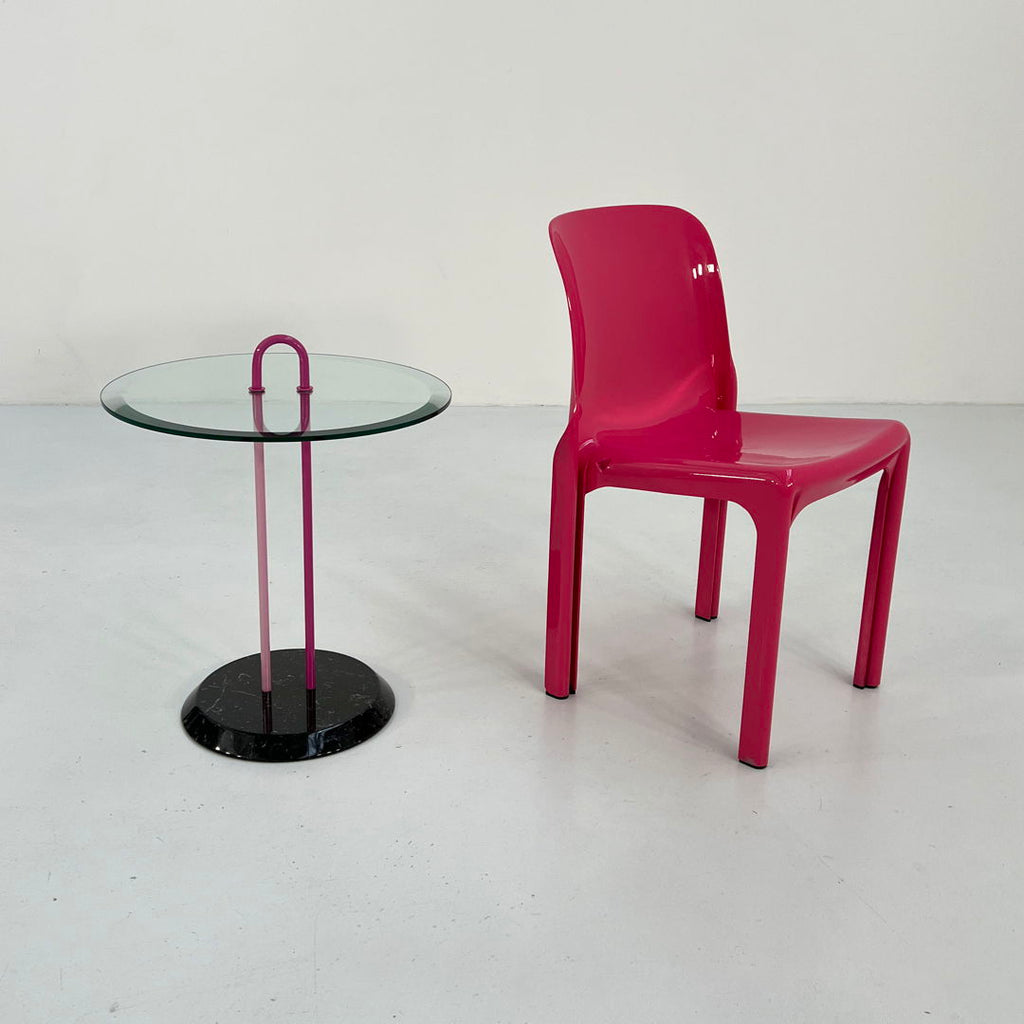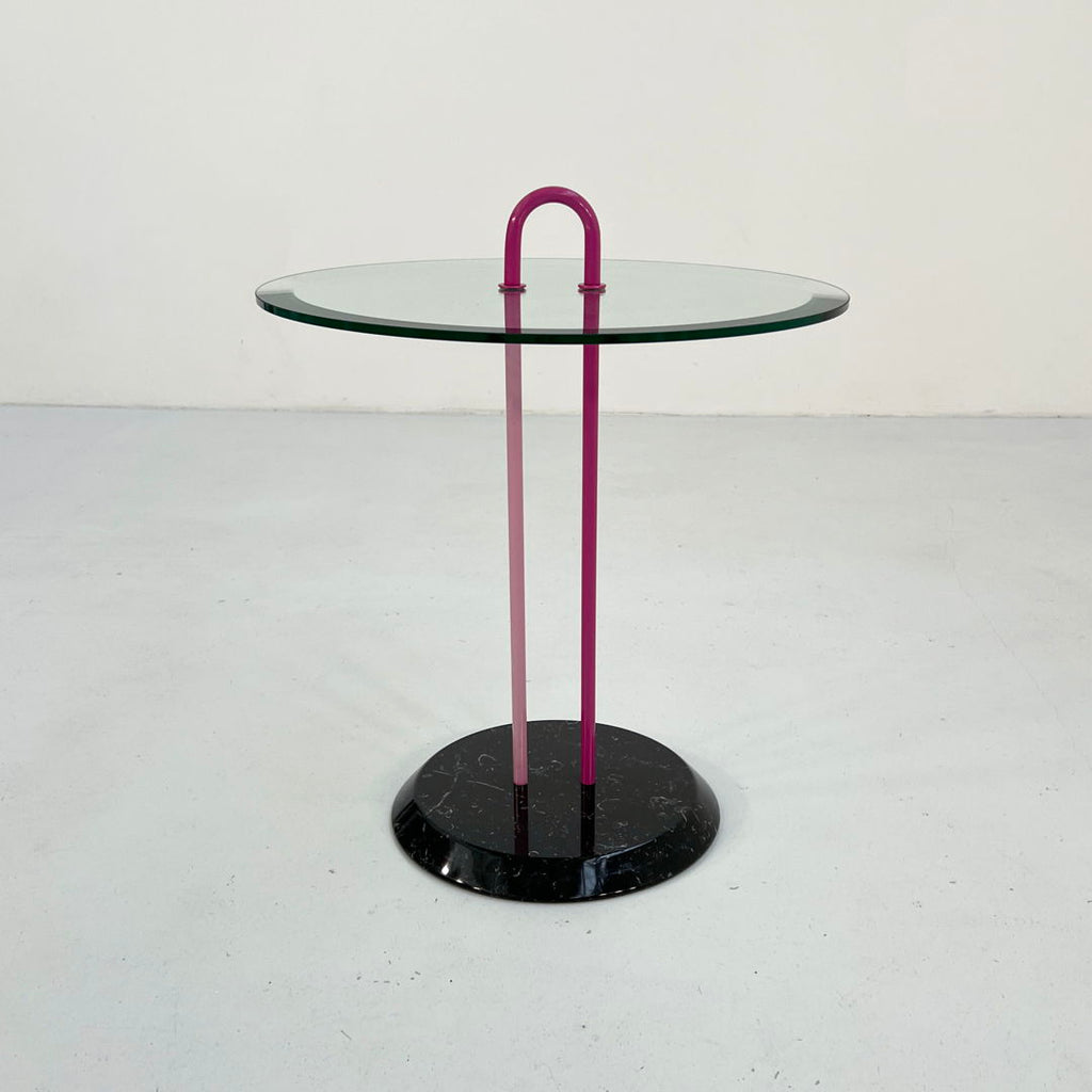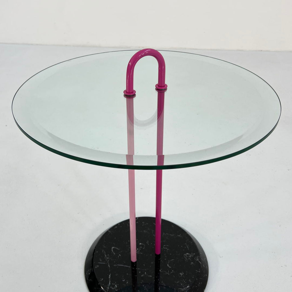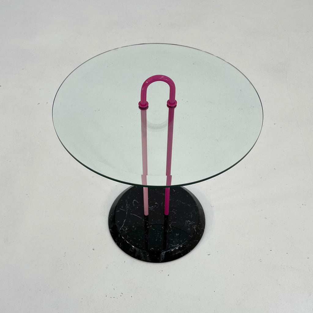 Pink Glass and Marble Side Table by Vico Magistretti for Cattelan Italy, 1980s