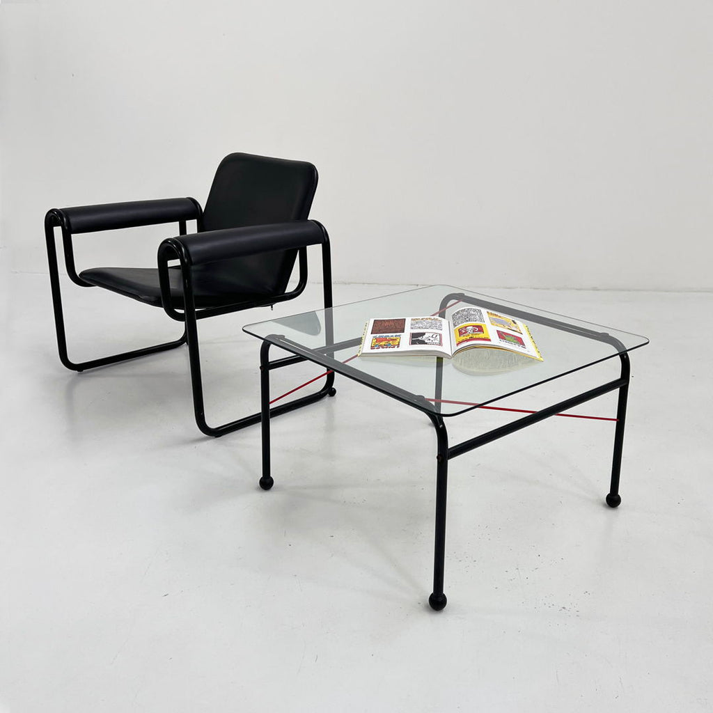 생산자 - Innovator Design 스웨덴 디자인 기간 - 90년대 측정 - 폭 66cm x 깊이 66cm x 높이 41cm 소재 - 금속, 유리 색상 - 검정, 빨간색 댓글 - 연령 및 사용에 따른 가벼운 마모.