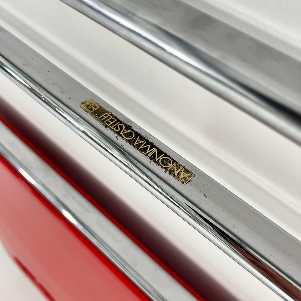 Anonima Castelli를 위한 Giancarlo Piretti의 레드 Platone 접이식 책상, 1970년대 디자이너 - Giancarlo Piretti 프로듀서 - Anonima Castelli 모델 - Platone 접이식 책상 디자인 기간 - 70년대 측정 - 폭 82cm x 깊이 65cm x 높이 70cm 재질 - 방풍, 강철 색상 - 빨간색 , 실버 상태 - 좋은 코멘트 - 연식 및 사용감에 따른 가벼운 착용감. 테이블 보드에 약간의 가벼운 흠집이 있습니다. 자세한 내용은 사진을 참조하세요.