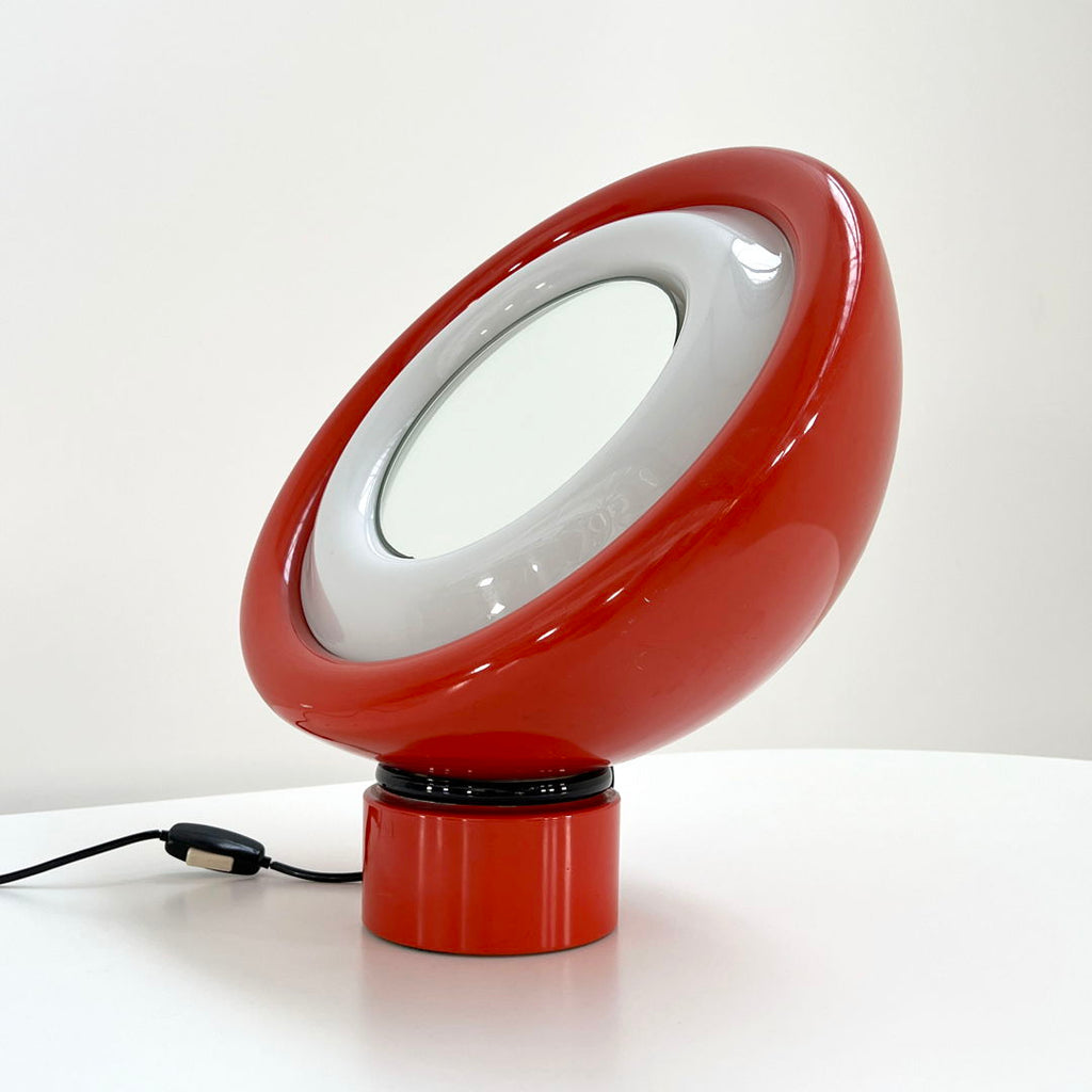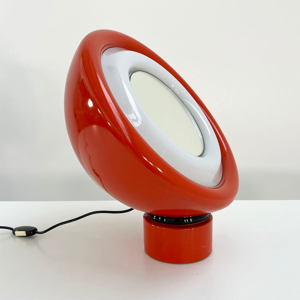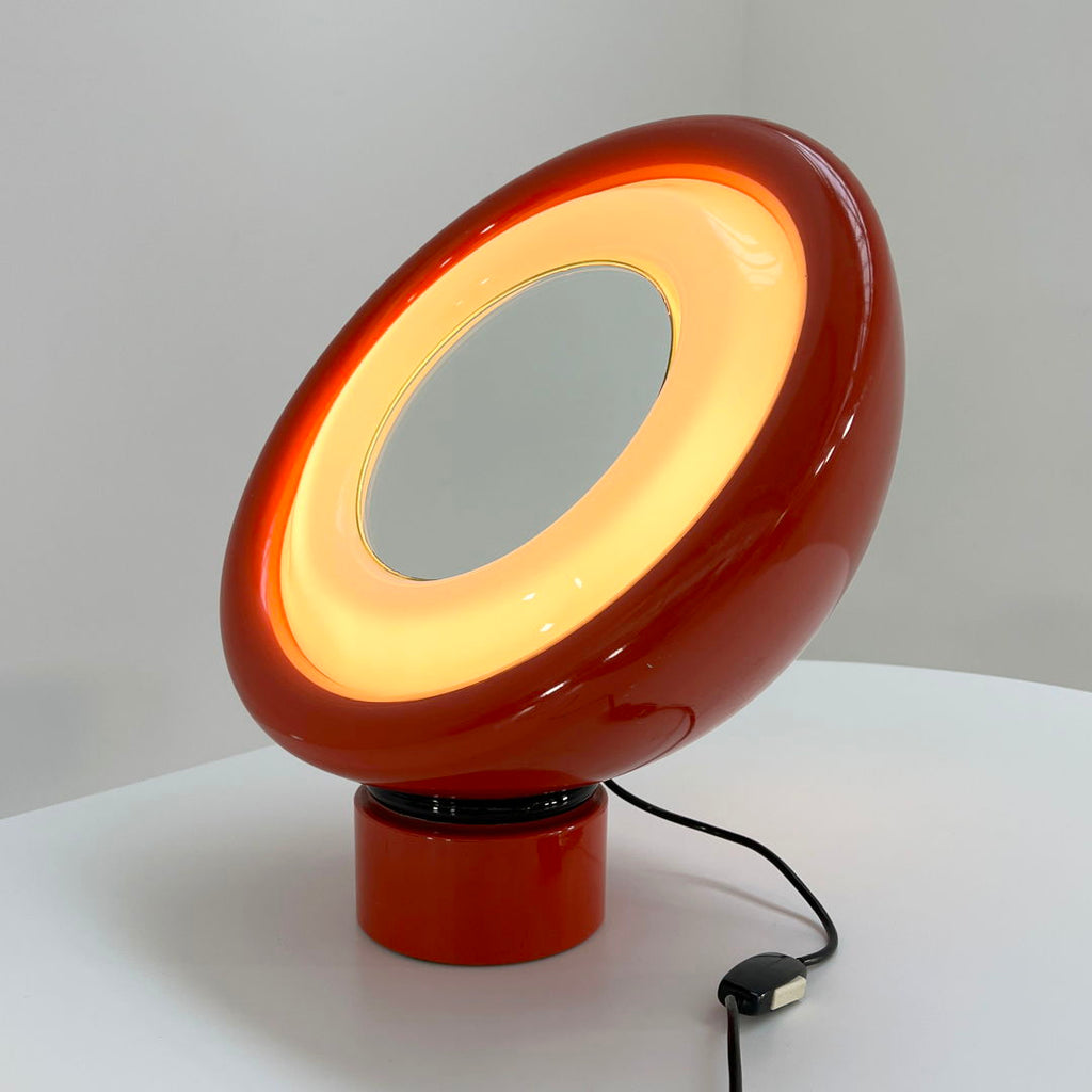 Martinelli Luce를 위한 Elio Martinelli의 빨간색 회전 거울 및 램프, 1970년대 디자이너 - Elio Martinelli 프로듀서 - Martinelli Luce 디자인 기간 - 70년대 측정 - 폭 44cm x 깊이 30cm x 높이 46cm 재질 - 금속, 플라스틱 색상 - 빨간색 전기적 특성 - 유럽 플러그(최대 240V)/전구 E27 상태 - 좋은 의견 - 연식 및 사용에 따른 가벼운 마모. 약간의 가벼운 흠집.