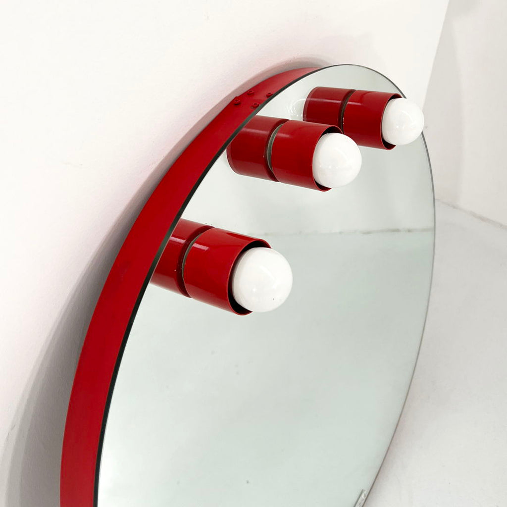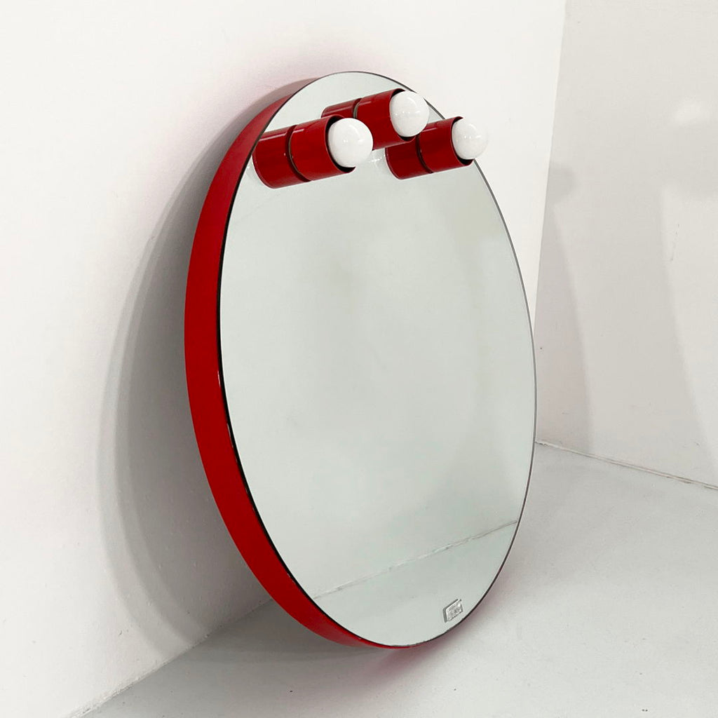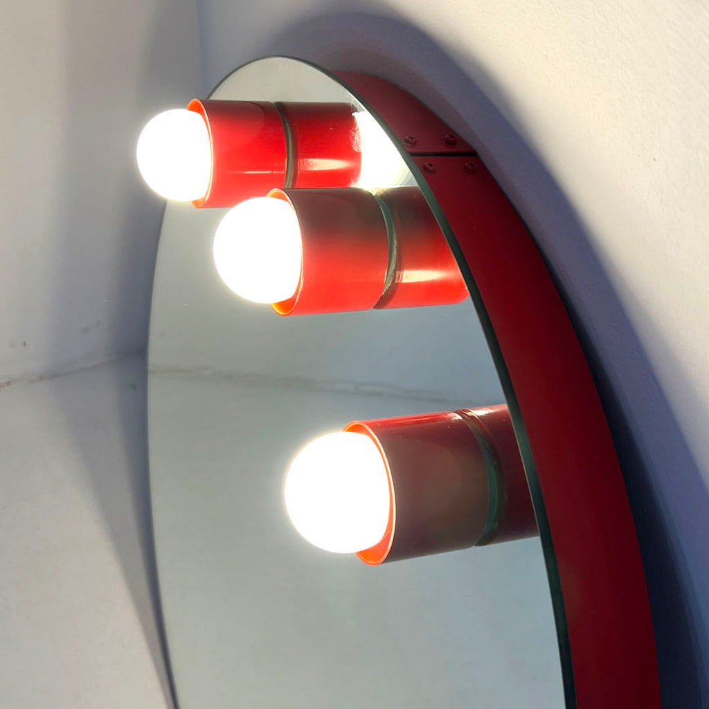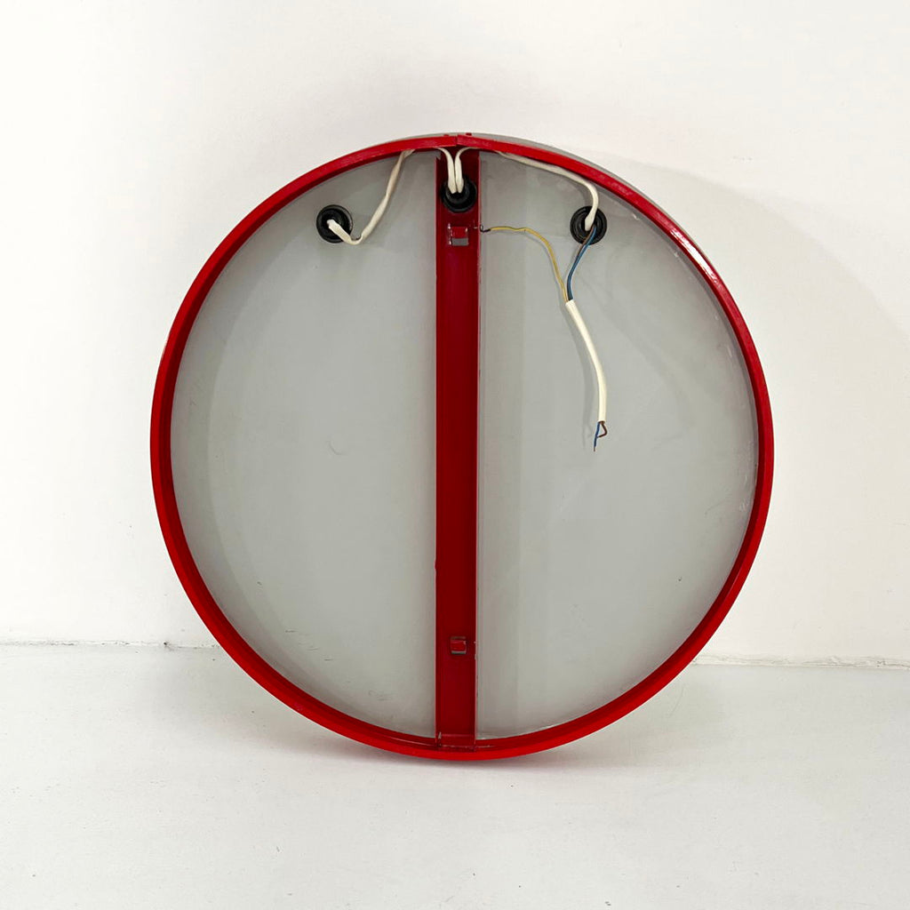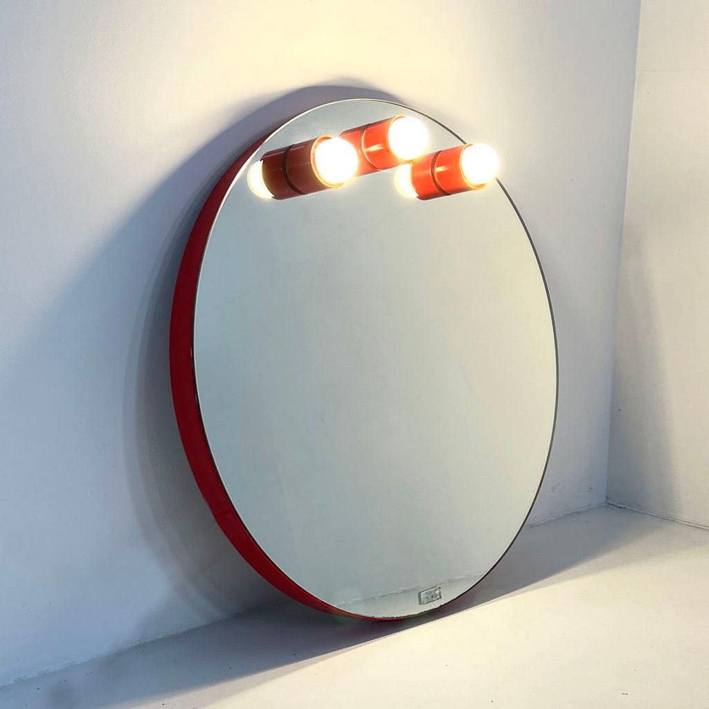 빨간색 금속 화장대 원형 거울, 1970년대 디자인 기간 - 70년대 측정 - 폭 60cm x 깊이 10cm x 높이 60cm 재질 - 금속, 거울 색상 - 빨간색 전기적 특성 - 전구 E14 상태 - 좋은 댓글 - 빛 연령과 용도에 맞게 착용하십시오.