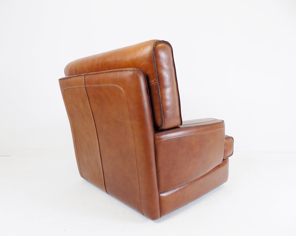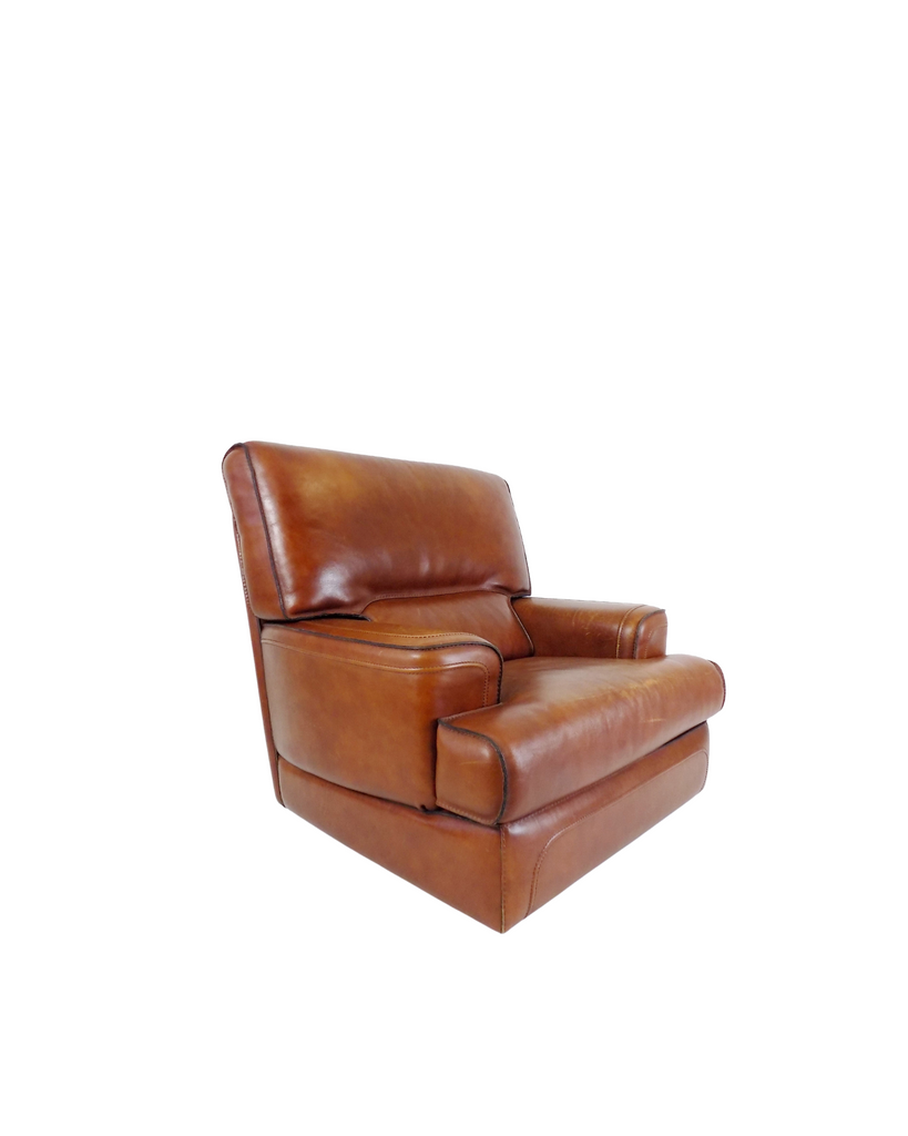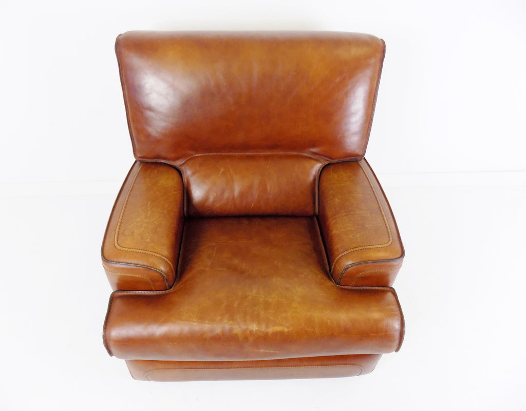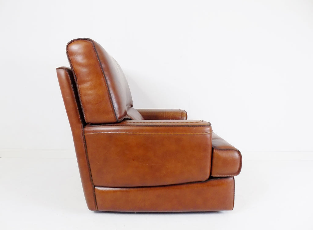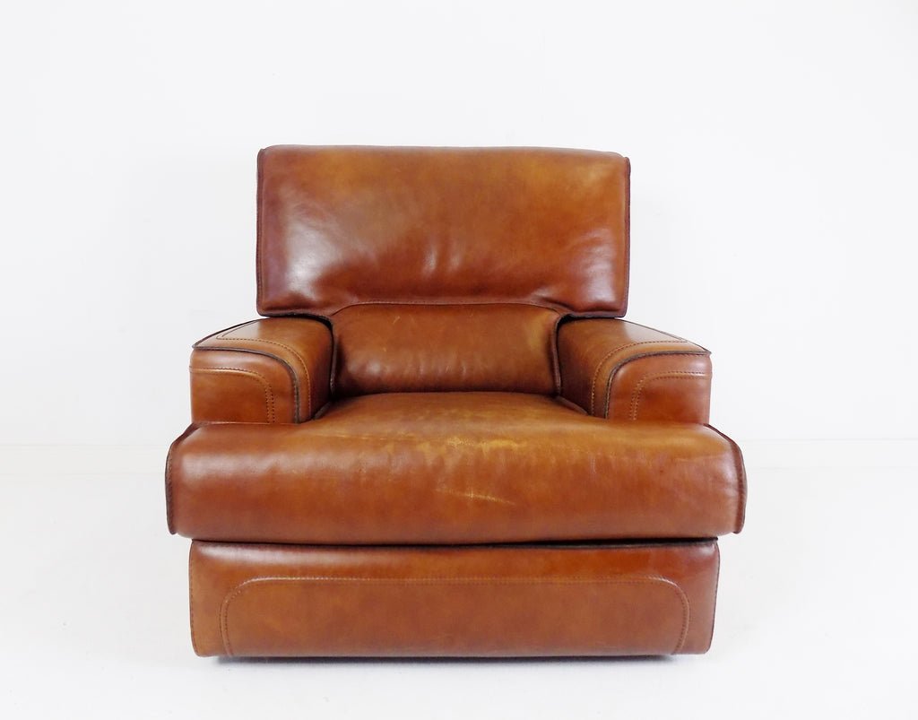 두 안락의자 모두 팔걸이와 좌석에 파티나 흔적이 있으며 아주 좋은 위스키 색 가죽으로 만들어졌습니다. 앱솔루트 스테이트먼트 암체어.