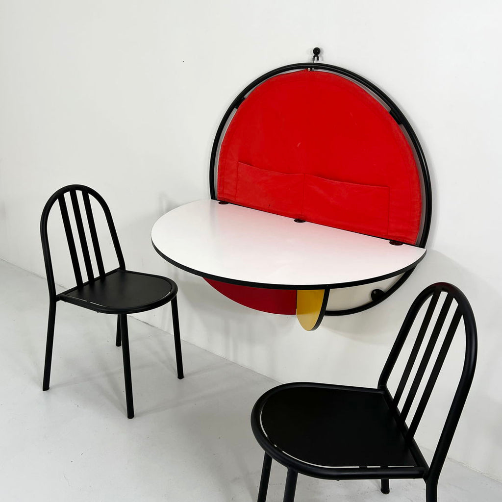 디자이너 - Giorgio Manzali 프로듀서 - Bonaldo 이탈리아 모델 - Rudy 디자인 기간 - 80년대 치수 - 폭 97cm x 깊이 열림 62cm - 닫힘 5cm x 높이 103cm 재질 - 금속, 라미네이트 색상 - 노란색, 빨간색, 흰색, 검정색 댓글 - 빛 연령과 용도에 맞게 착용하십시오. 가장자리에 약간의 흠집/깨짐 - 세부 사진을 참조하세요.