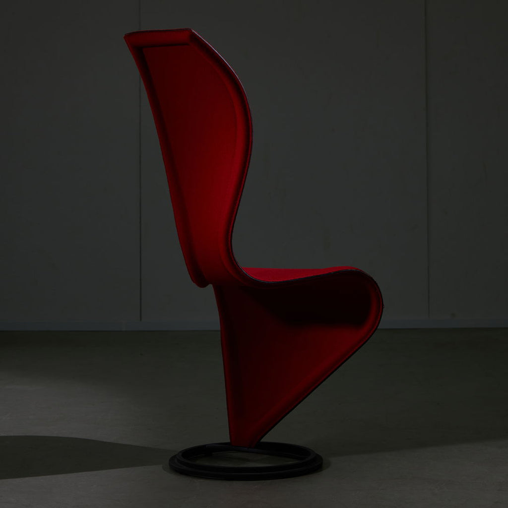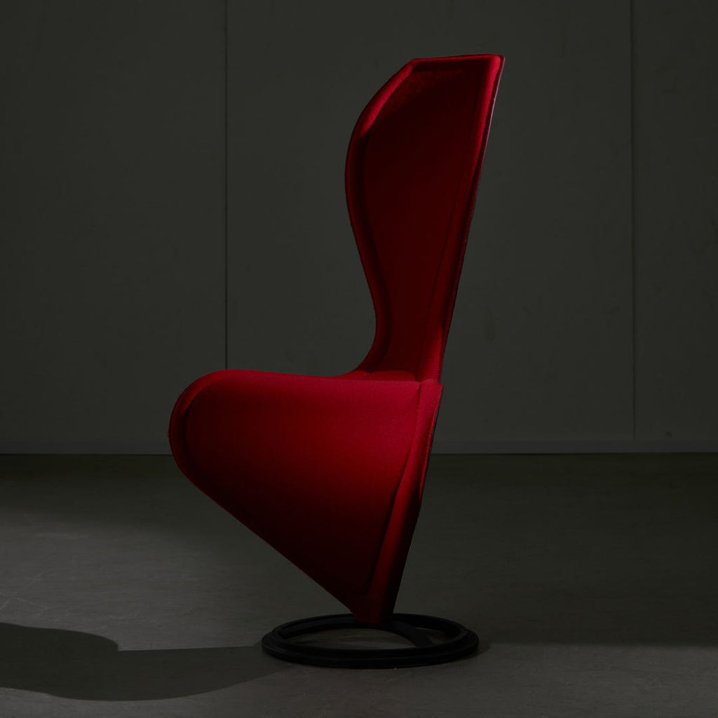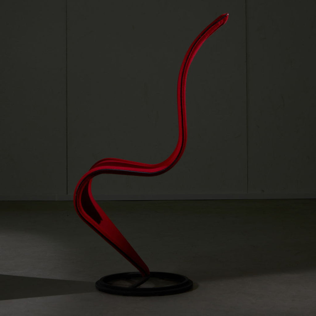 The iconic S-chair by Tom Dixon for Cappellini features a hard foam frame with red wool cover, on a round cast iron base. Designed in 1988, it is still an emblem of contemporary design. The S-chair can be found in the permanent collections of the world’s greatest museums, such as the MoMa in New York or the Triennale in Milan. The item is in a great condition, with zero to minor signs of use.