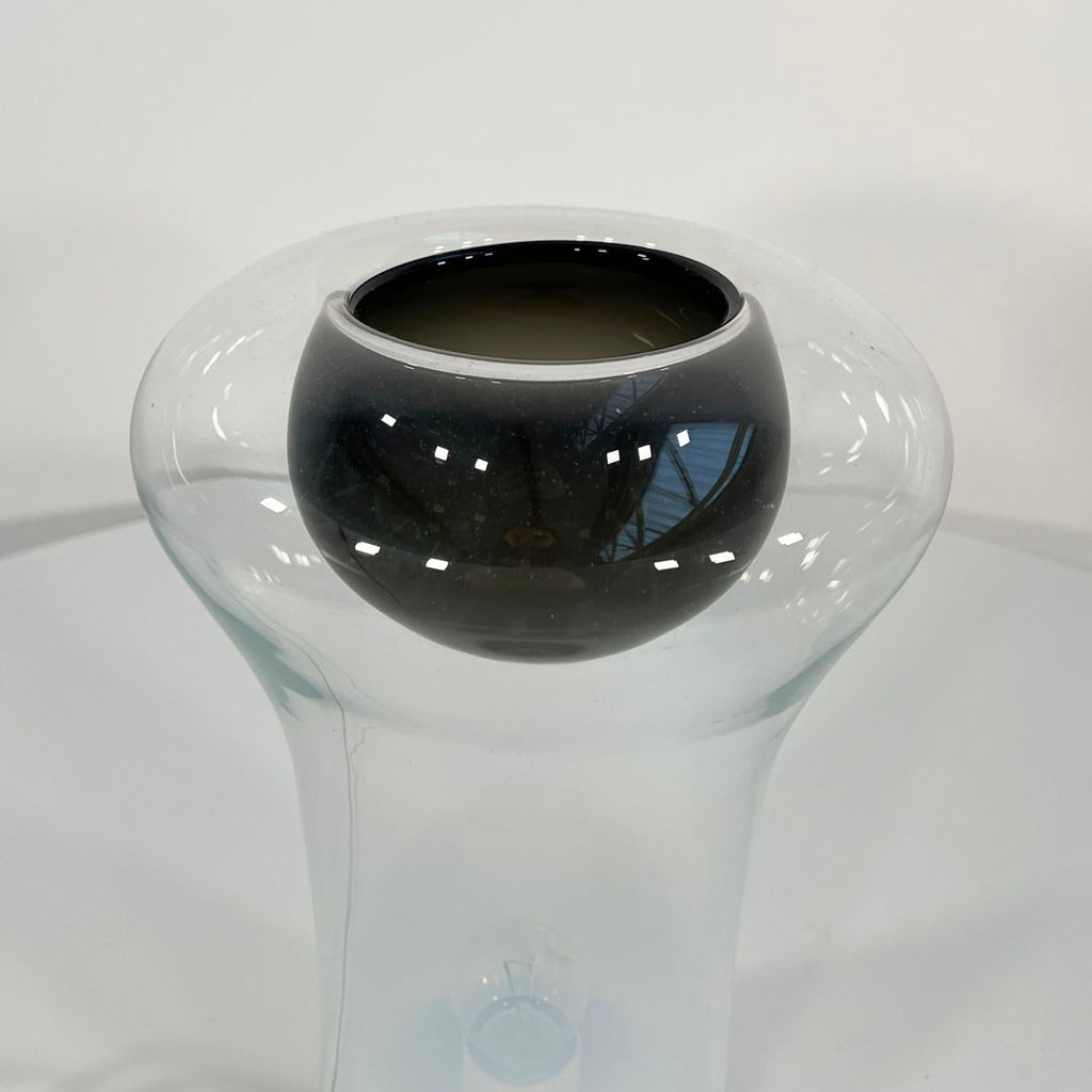디자이너 - Angelo Mangiarotti 프로듀서 - Artemide 모델 - Saffo 테이블 램프 디자인 기간 - 70년대 치수 - 폭 21cm x 깊이 21cm x 높이 33cm 재질 - 유리, 알루미늄 색상 - 흰색, 검정색 전기적 특성 - 유럽식 플러그(최대 240V) / 전구 E27 댓글 - 연령과 사용에 따른 가벼운 마모. 하나에는 서명이 새겨져 있습니다(가장 연기가 많이 나는 유리 잔에 있는 것). 덜 훈제된 제품에는 서명이 새겨져 있지 않으며, 생산 날짜가 더 이른 제품입니다.