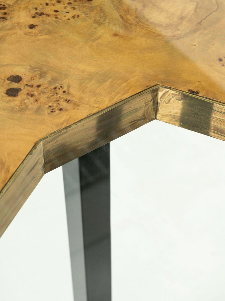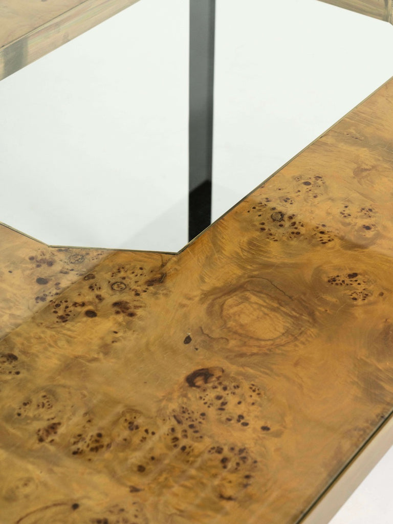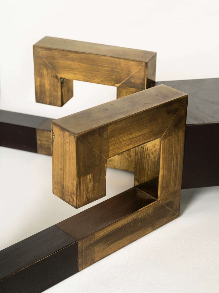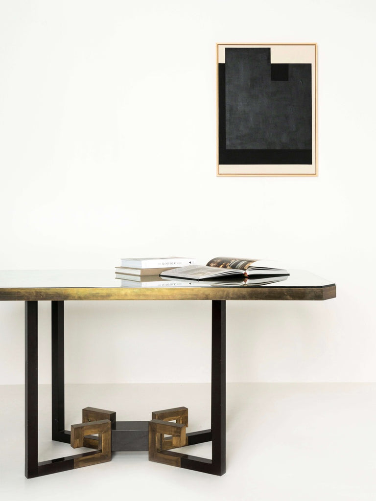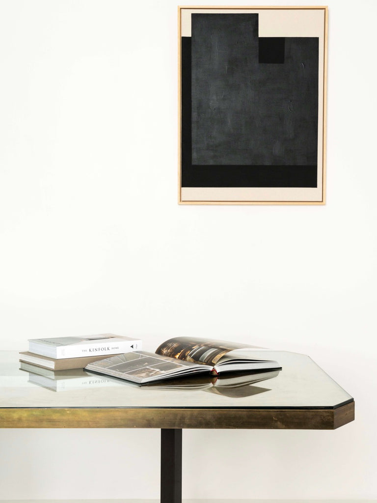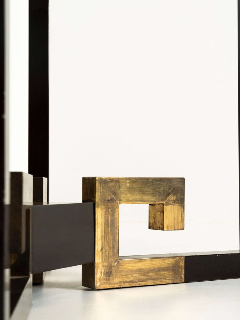 1970년대 이탈리아 앙골로메탈라르테를 위한 산드로 페티 식탁은 여러 애호가에게 사랑받는 품목 중 하나입니다. 특히 검은 색 크롬 금속, 황동 다리 및 유리 상단의 조합이 인기 입니다.